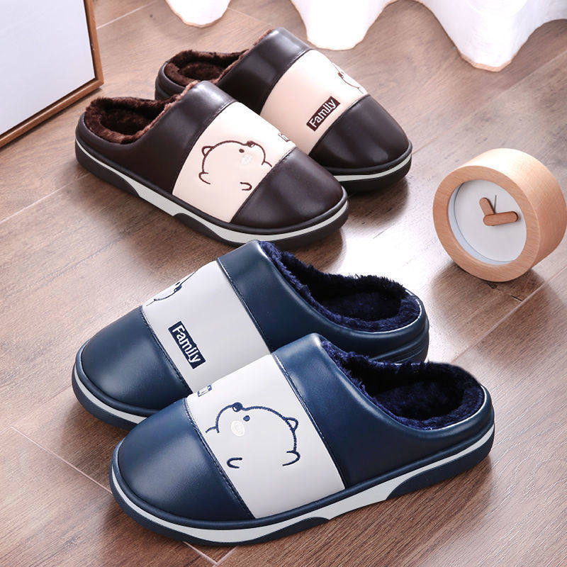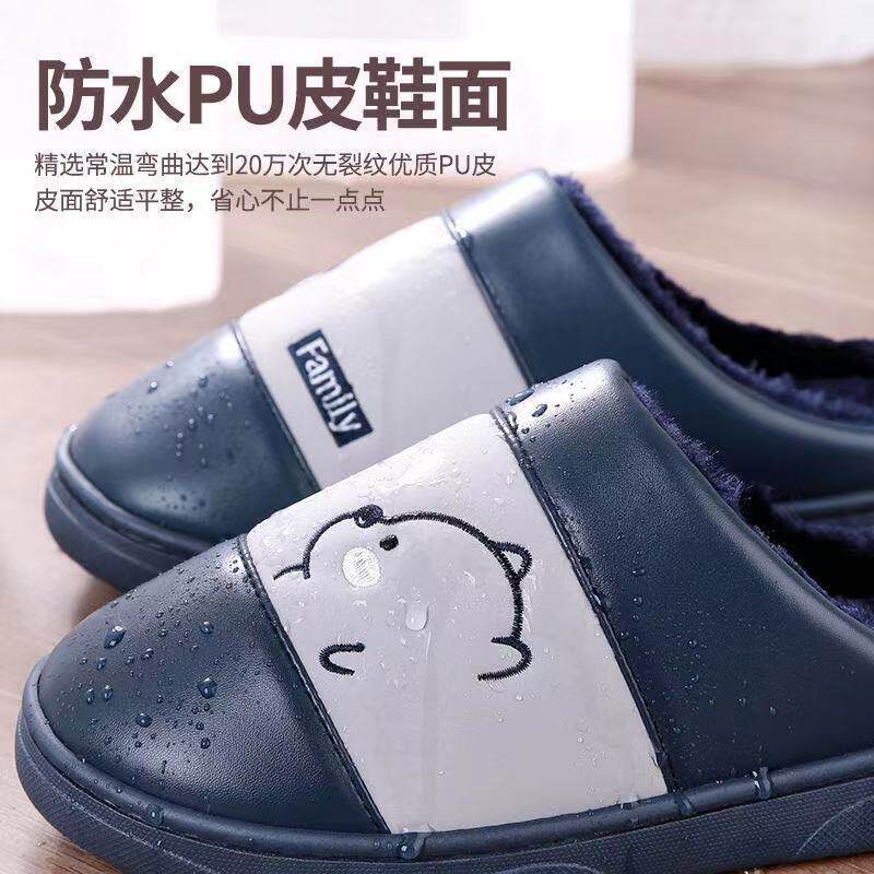 Waterproof cotton slippers men's autumn and winter warm thick soled men and women home home fashion cartoon non-slip wool slippers women