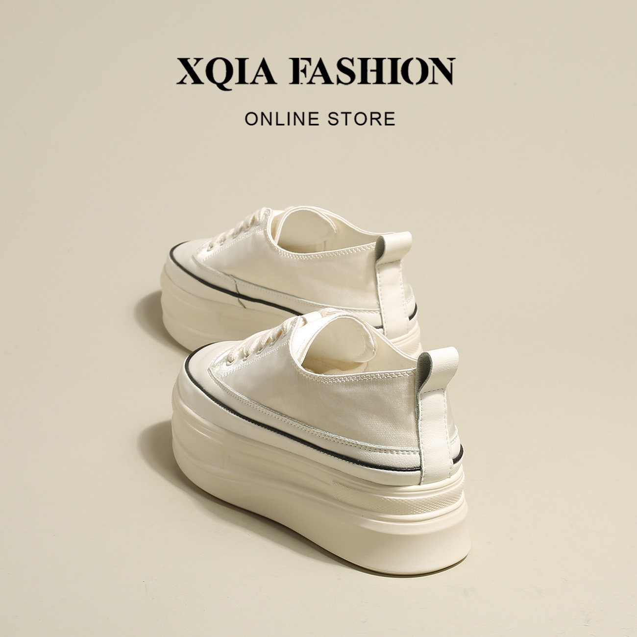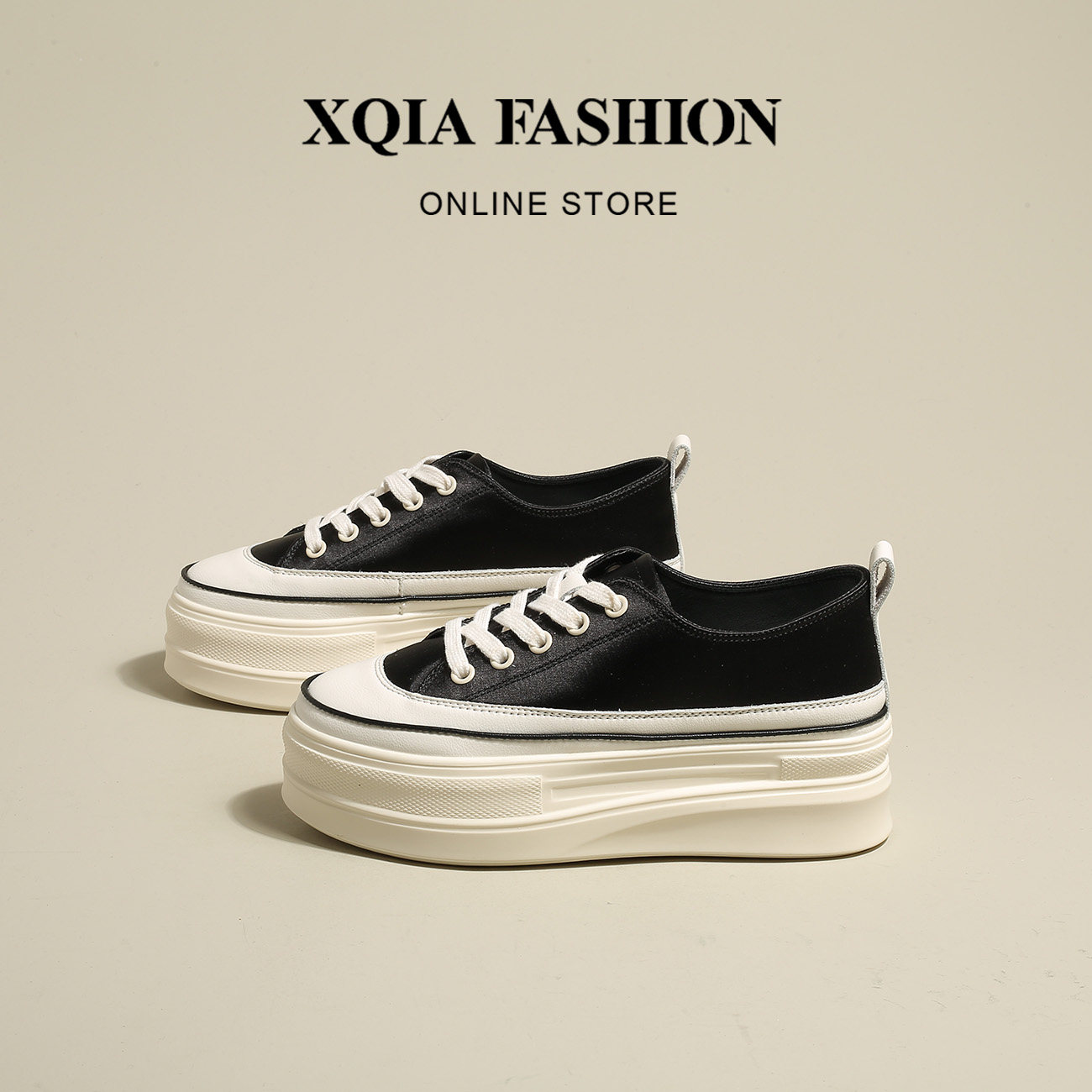 Muffin shoes women's thick bottom 2022 new 100 hitch heightening sports women's shoes spring outburst silk satin bread board shoes old daddy