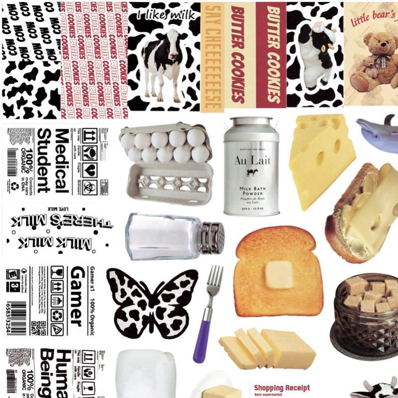 Korean ins style simple black and white cow cheese butter bear sticker set hand account diy mobile phone shell decorative painting