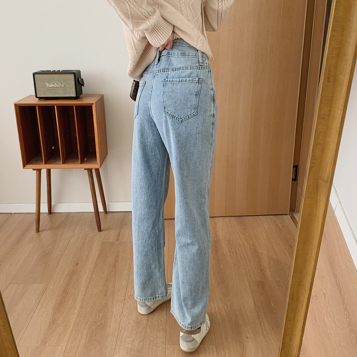 Large Bite Homemade Spring Summer New High Waist Display Slim Two Grain Buttons Jeans Wide Pants Loose 100 Hitch Comfort Casual Pants