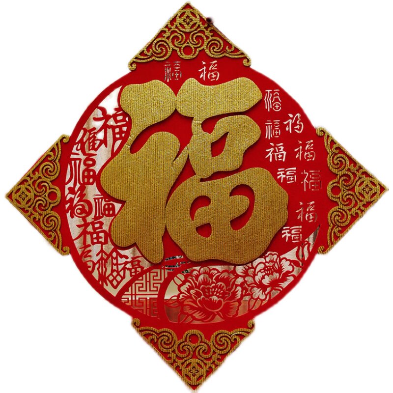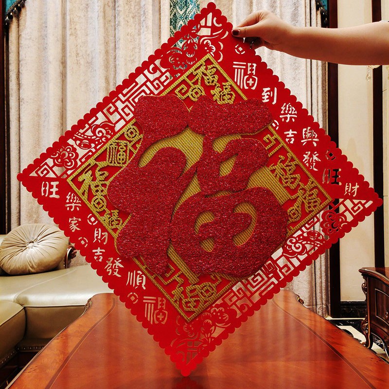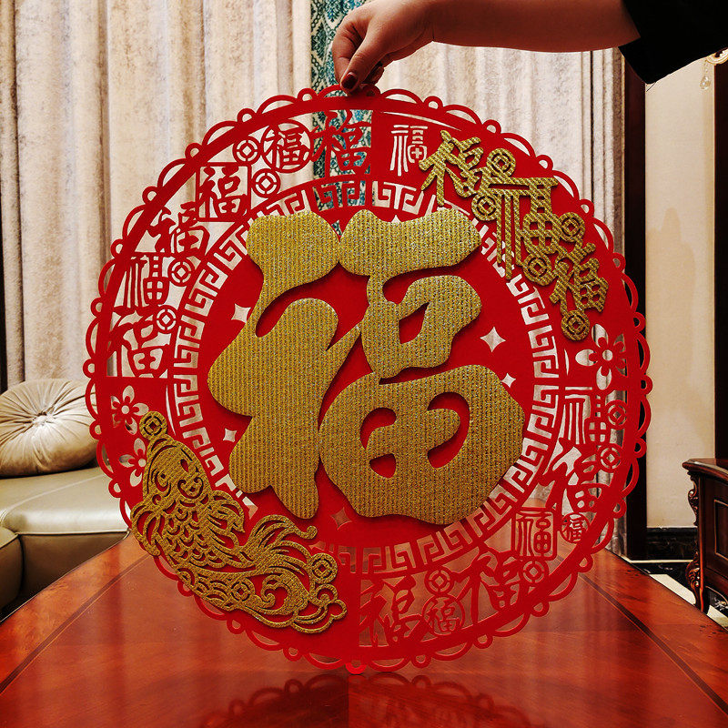 Dafu word wall stickers into the door Fu word stickers door stickers round hollow golden Spring Festival three-dimensional New Year tiger decoration