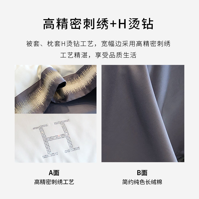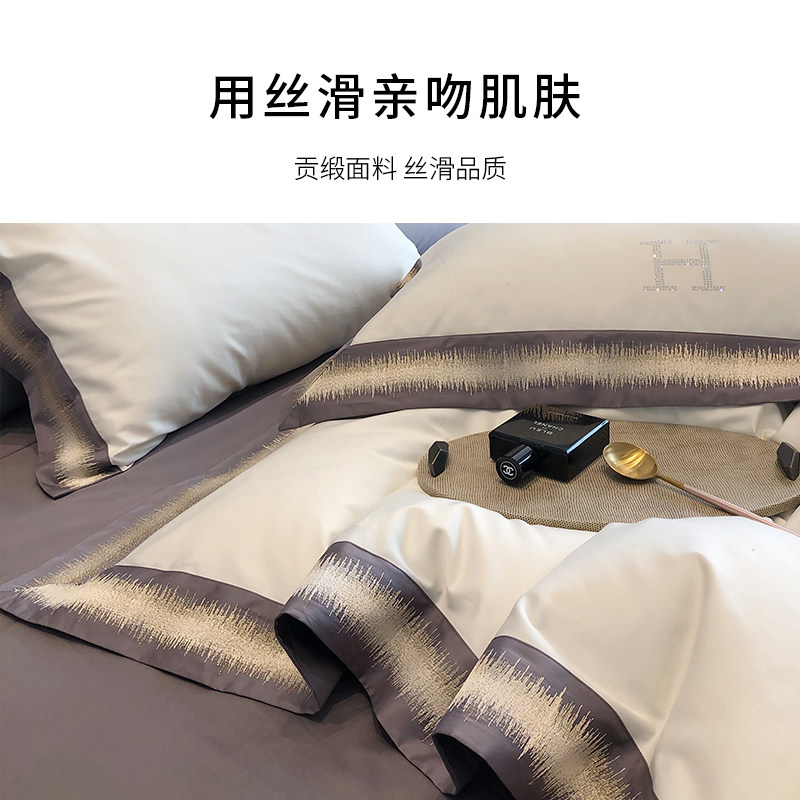 Originally German anti-mite European high-end four-piece set 140 embroidered satin 100 pure cotton cotton bed sheet four-piece set