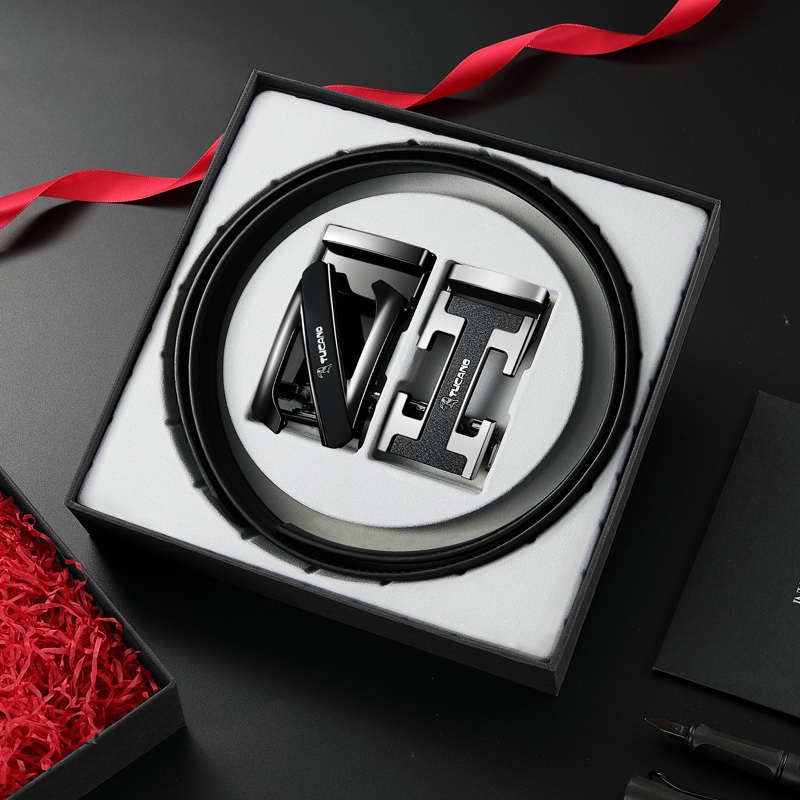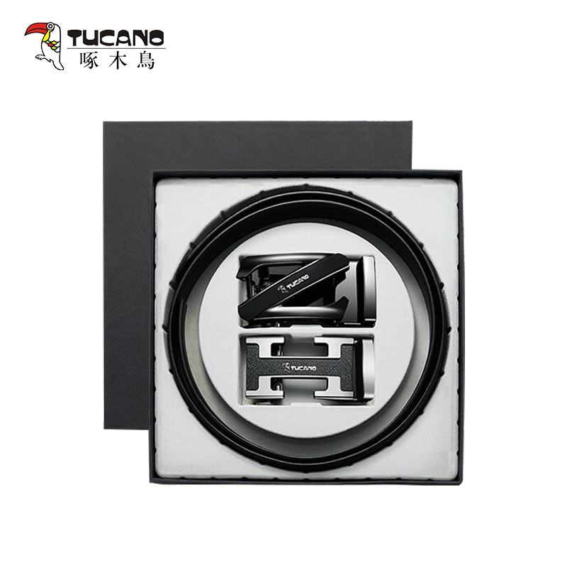 Woodpecker Leather Strap Men Genuine Leather Automatic Buckle Youth Business Gift Box Bull Leather Pants Belt Brief Birthday Present