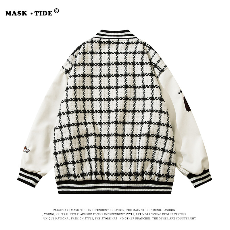 MASKTIDE national tide spring and autumn plaid splicing baseball jacket jacket men and women street couple loose embroidery jacket tide