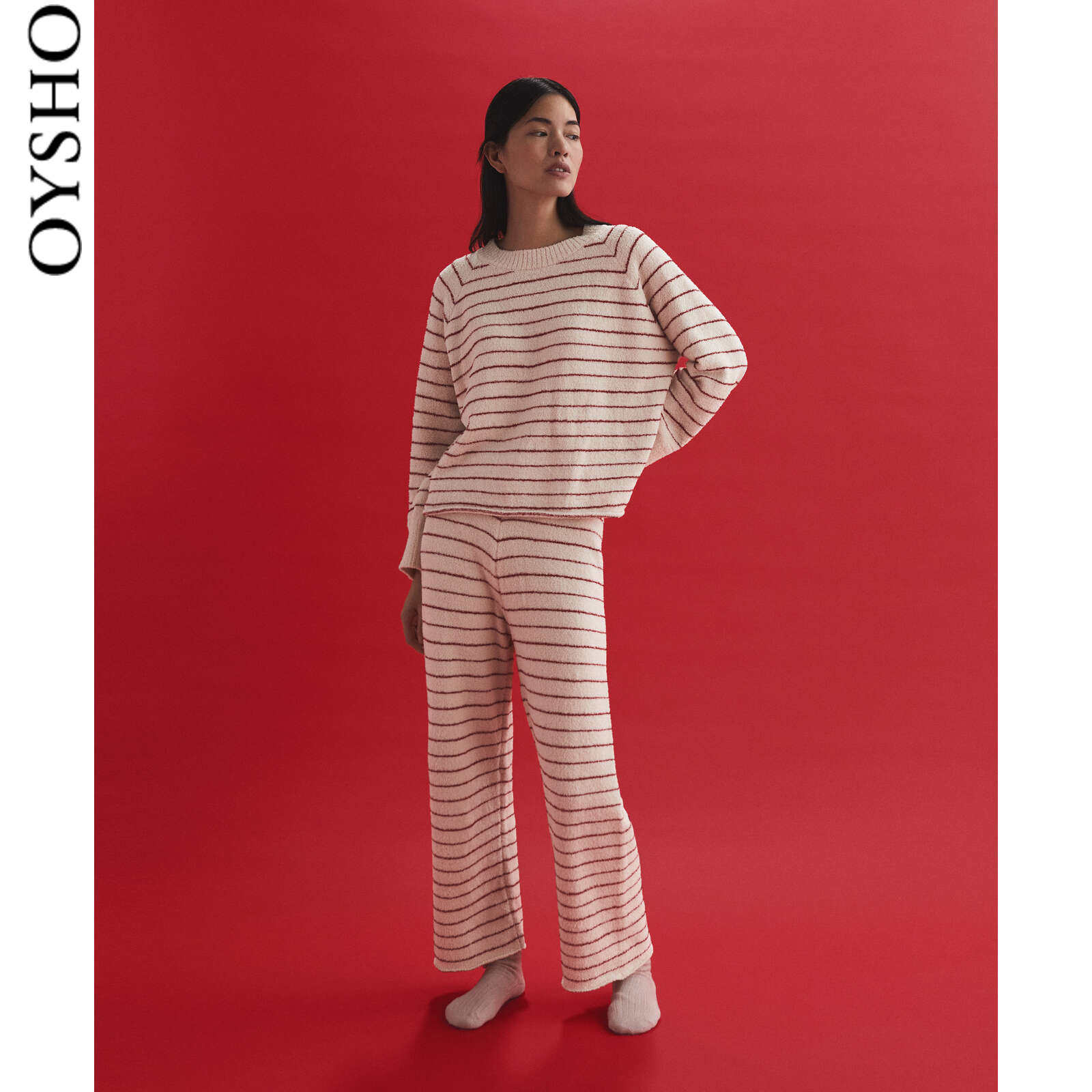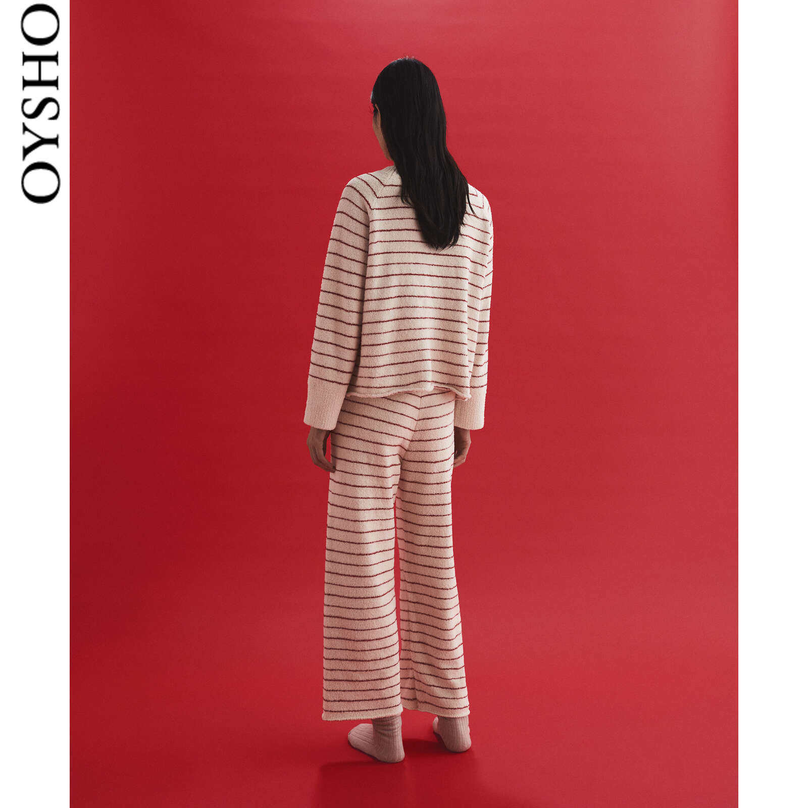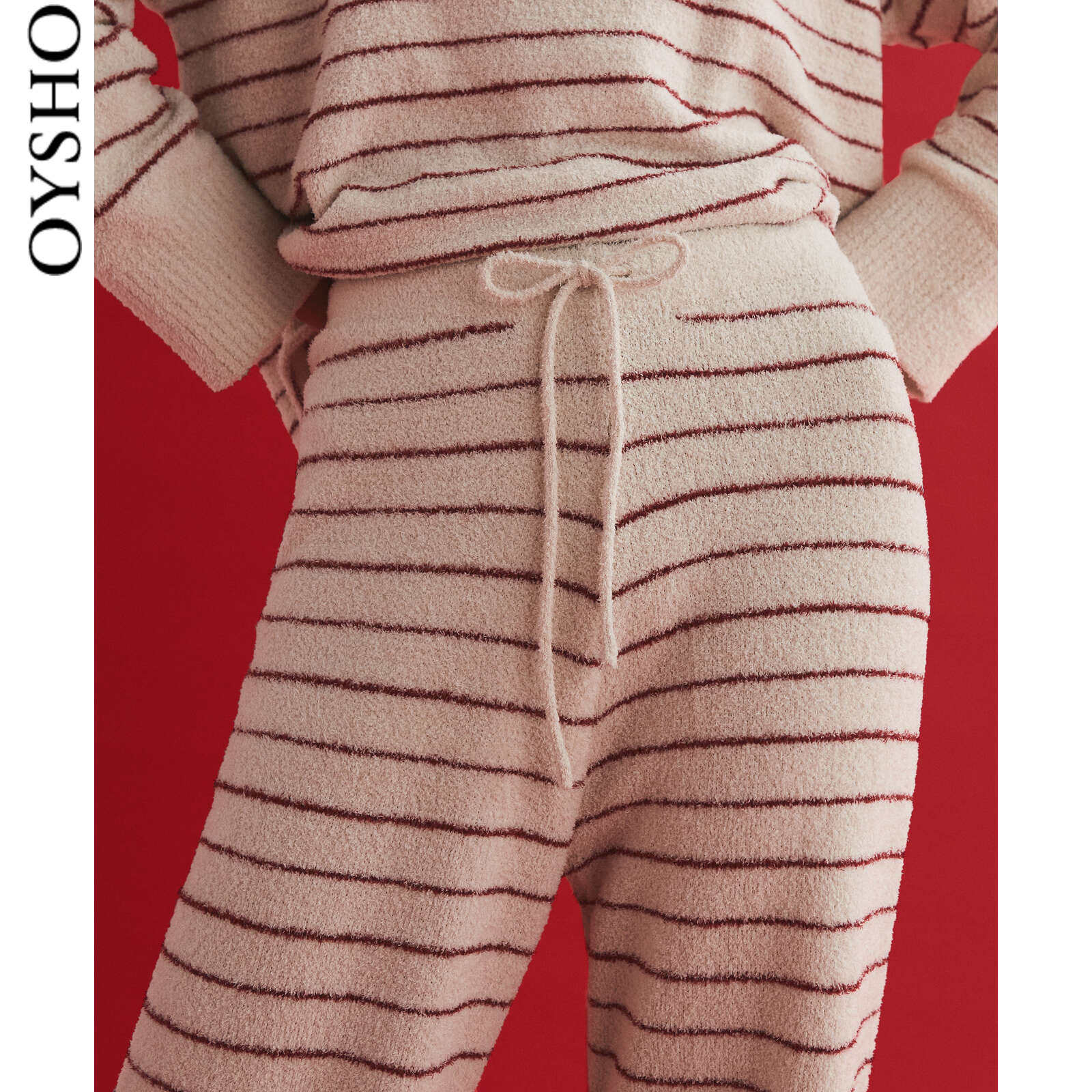 Spring Summer Discount Oyho Shake Grain Suede Red Striped Home Sleeping Pants Straight Drum Long Pants 30335183122