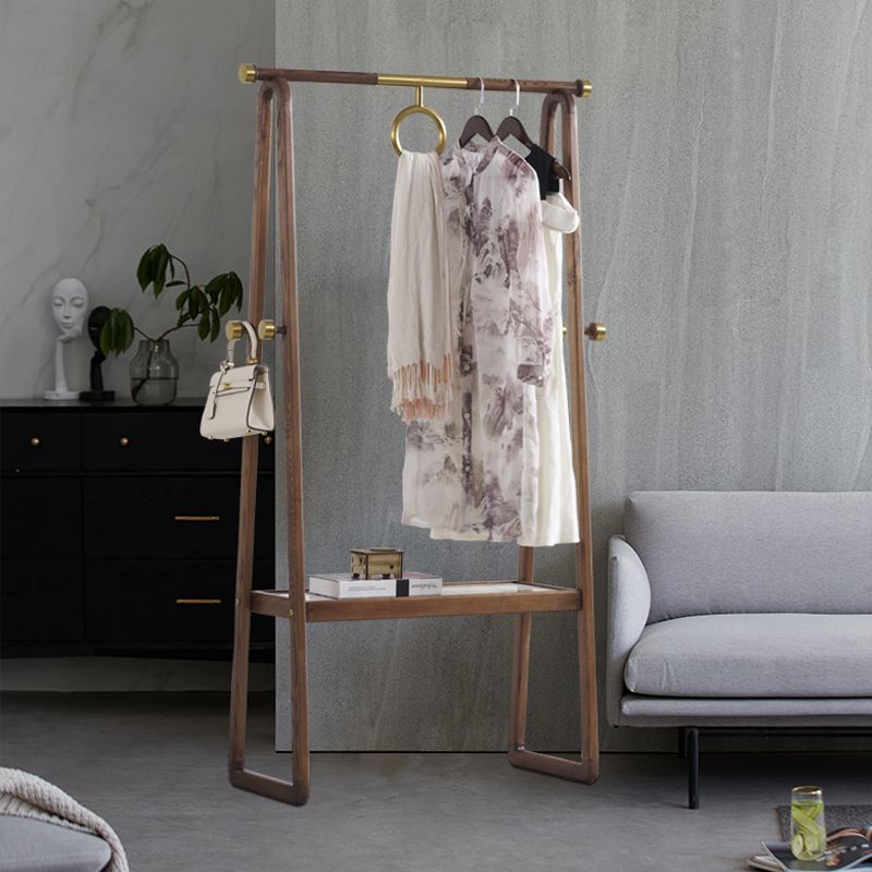 Hangshirt frame landing bedroom solid wood multi-function cloak rack household living room clothes hanging frame solid vertical shelf