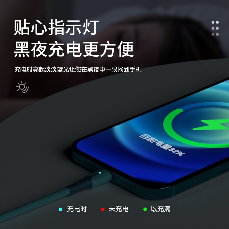 Liquid soft glue intelligent belt lamp 5A super fast charging mobile phone charging line suitable for Android flat fruit type-c data line