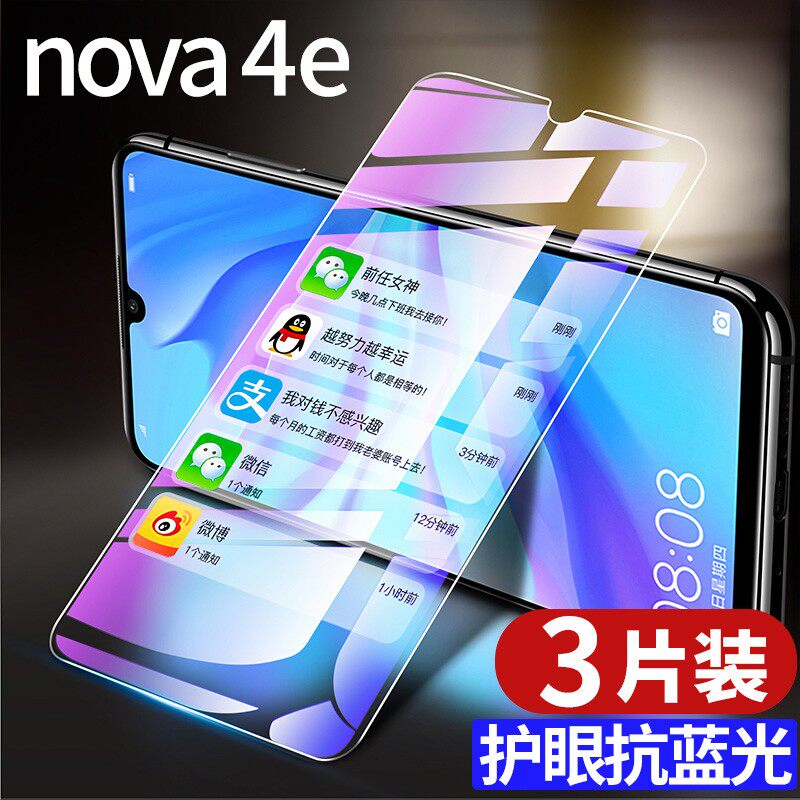 Suitable for Huawei nova4 tempered film nove4e full screen coverage of novo mobile phone protective film nov all-inclusive nava film note protection navo anti-blue light n0va protection
