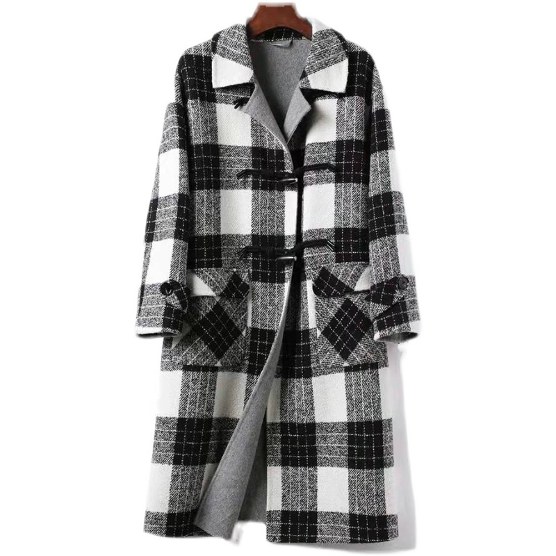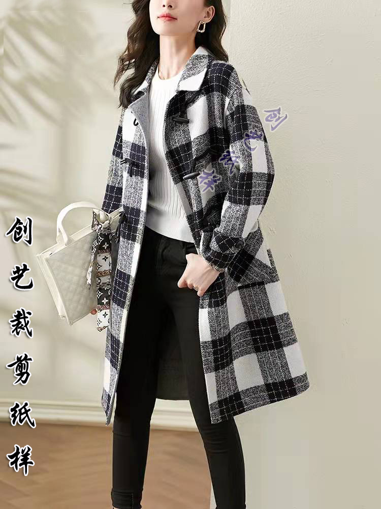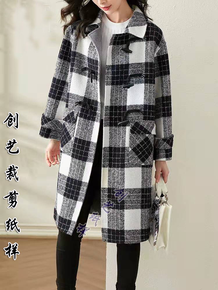 Paper pattern Q340 plaid double-sided cashmere coat women's autumn and winter loose wool coat clothing cutting and making clothes