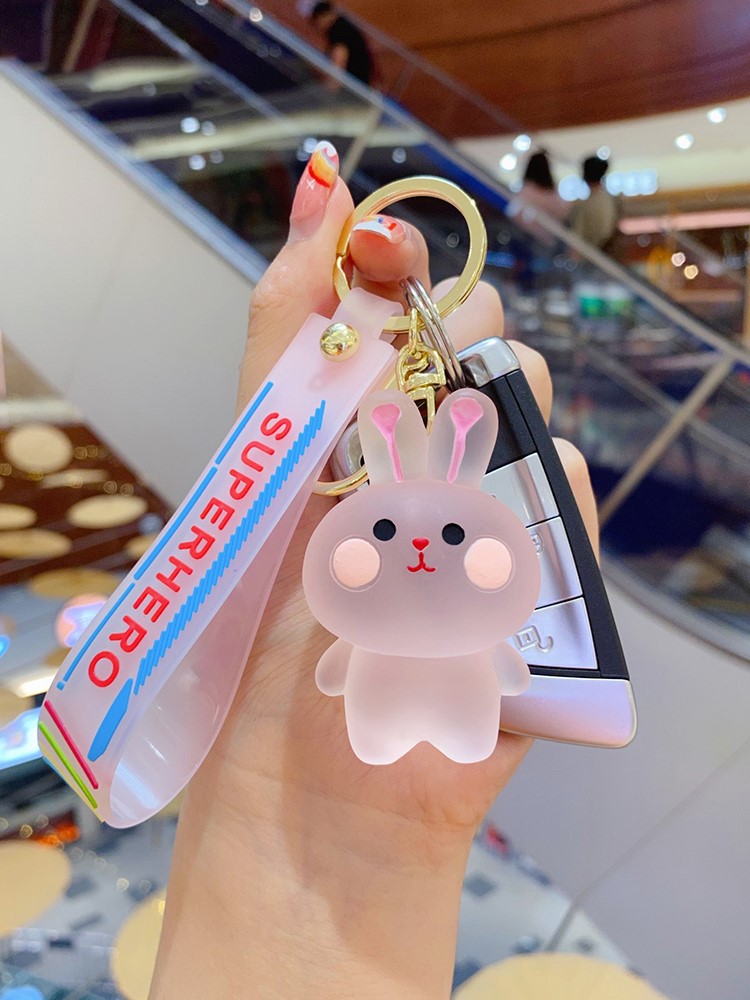 Transparent crystal small rabbit key button female delicate inwind personality creative couple key chain cute little pendant woman