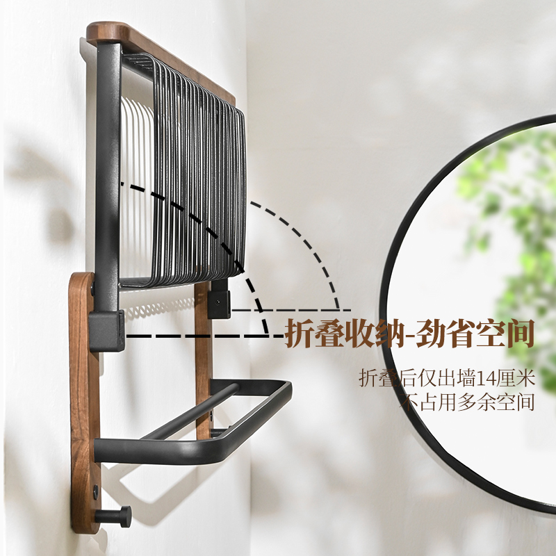 Bathroom rack towel rack free punching toilet wall hanging bathroom toilet toilet walnut towel rack