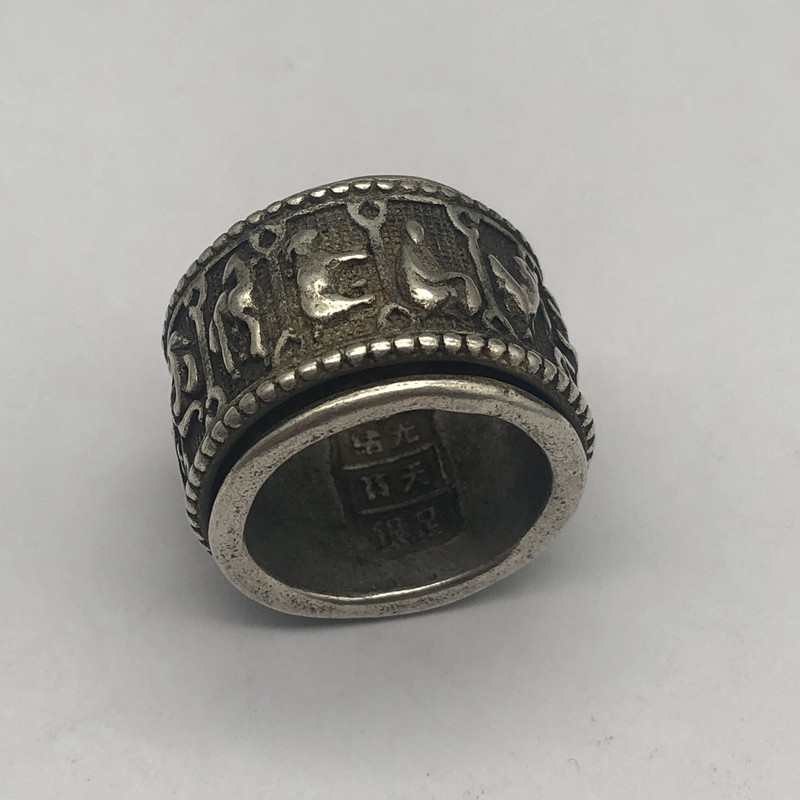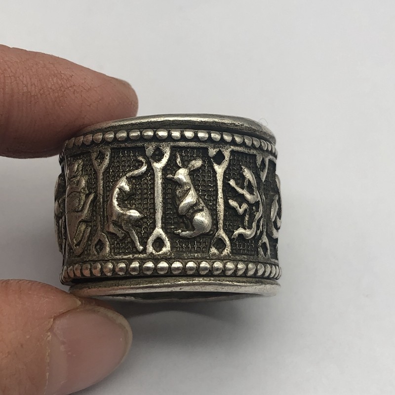 Antique miscellaneous rings Retro imitation silver zodiac wrench ring can turn old-fashioned wrench jewelry