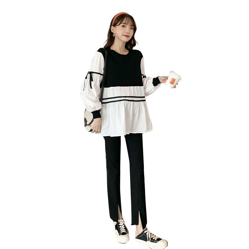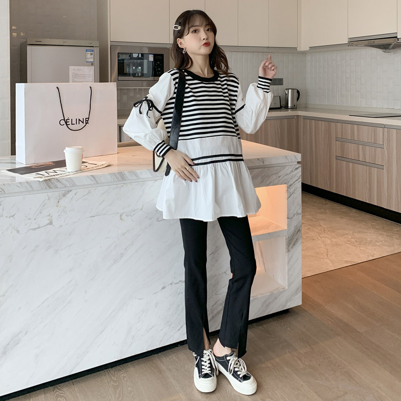 Black Splice White Blouse Striped Blouse Black Splice Black Inner Hitch Long Pants Black Splicing Gray Inched Trousers Striped Blouse Blouse Black Inner Lap Trousers Striped Blouse Grey Inner Hitch Black Splicing