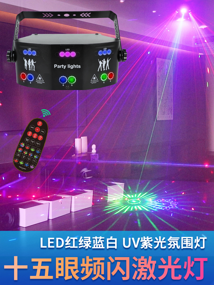15 Eye Stage Light Sound Control Rotating KTV Bar Trampoline Laser Light Laser Seven Color Color Changing Atmosphere Burst Lights