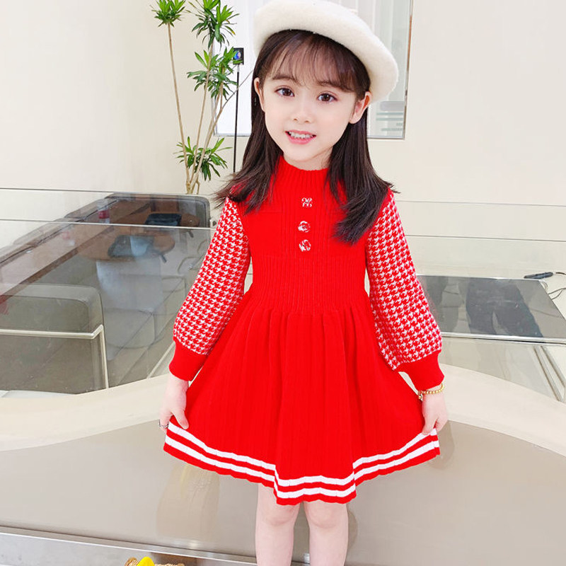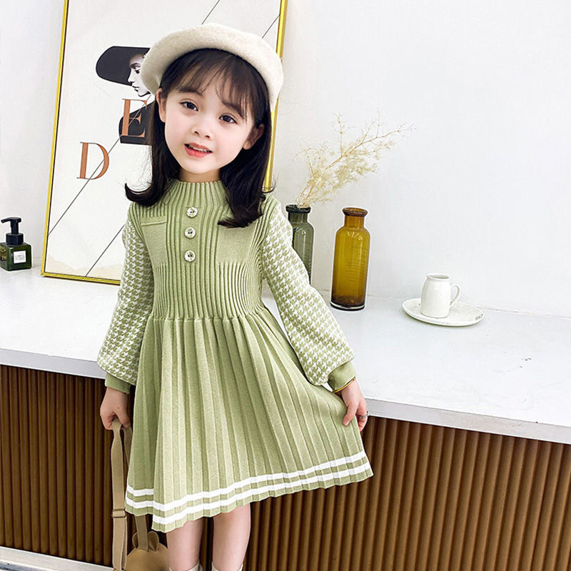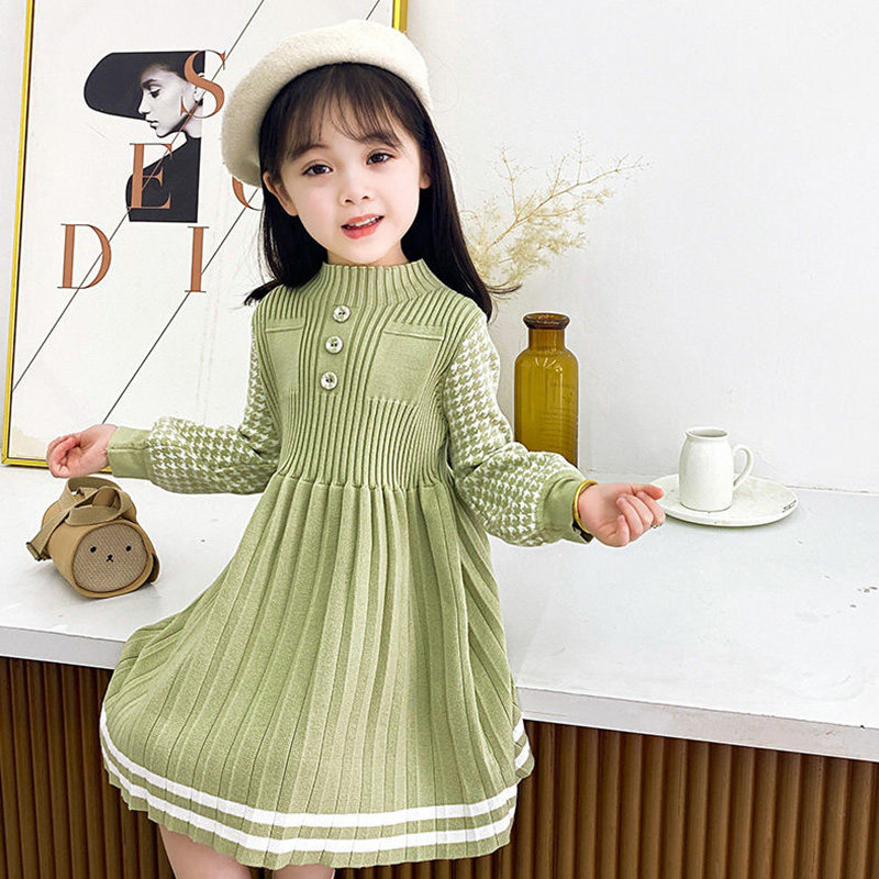 Girls dress knitting 2022 new middle-aged children's long-sleeved princess Korean version baby sweater pleated skirt annual dress