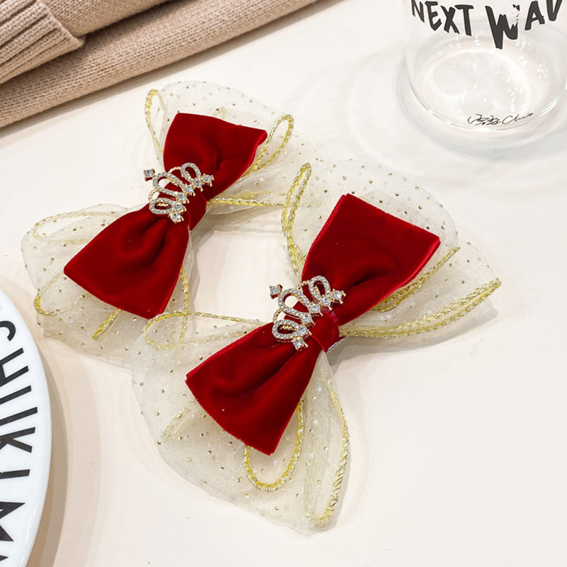 Children's butterfly knot headwear New Year Girls crown hair clip baby New Chinese New Year red hair decoration little girl Baiyear hairpin