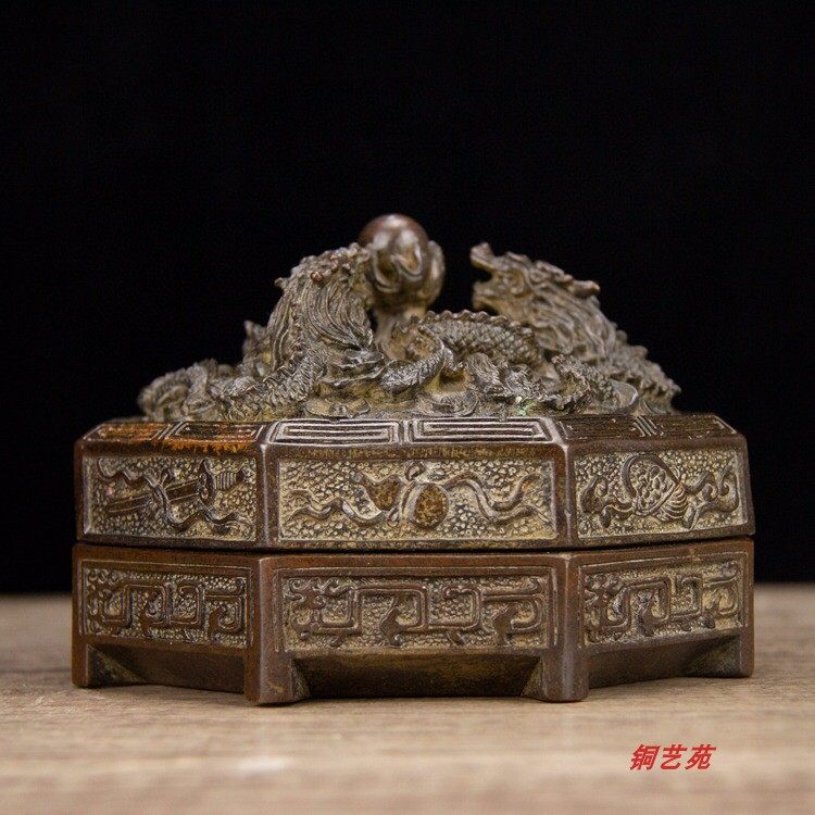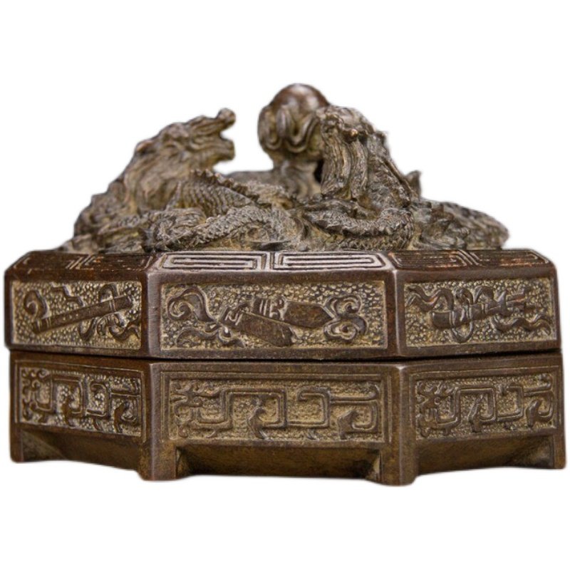 Pure Bronze Antique Dragon Drama Pearl Star Anise Eight Precious Aromas Box Sandalwood Pan Fragrant Lavender Containing Box Parsley Decoration Pendulum Decoration