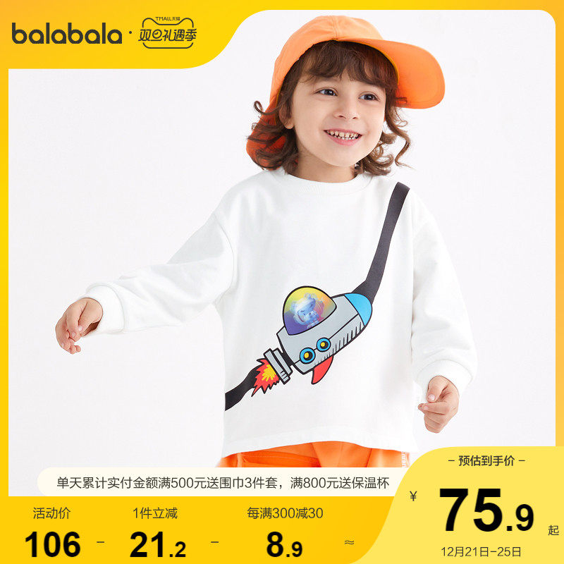 Balabala children's clothing boy's sweater children's spring clothing baby cool cartoon children's round neck cute long-sleeved top