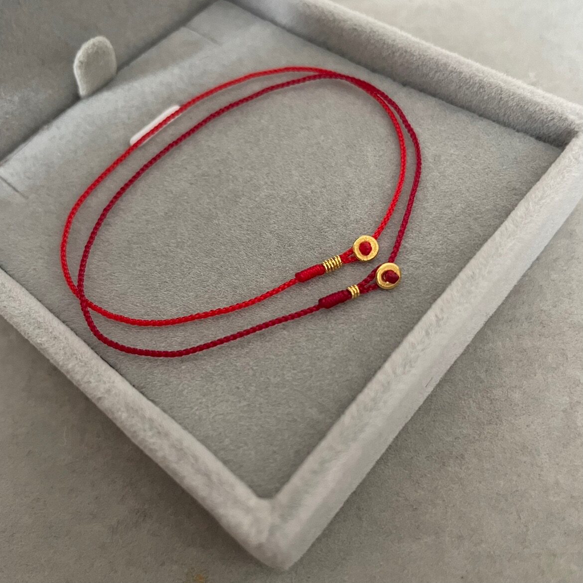 Giant Finale 24K Gold 999 Foot Gold Small Septer Bento Year Hand Woven Ox Years Vegetarian Red Rope Bracelet Women-Taobao