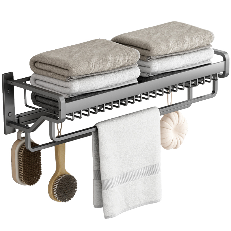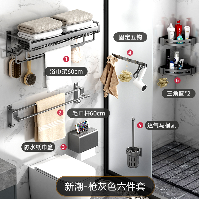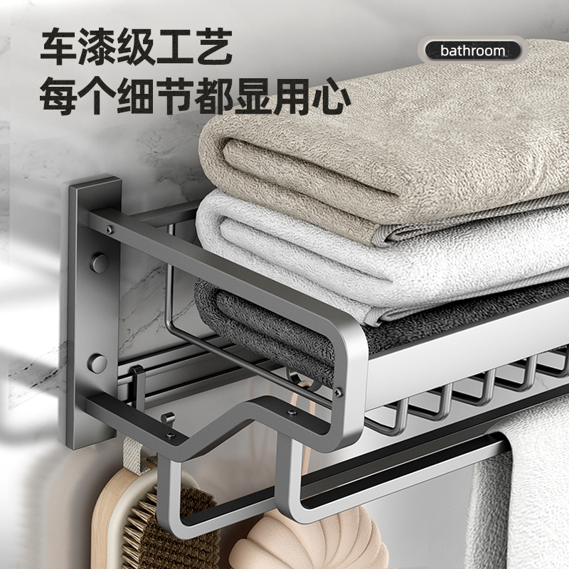 Gun gray towel rack free punch bathroom powder room rack wall-mounted bath towel rack toilet towel storage rack