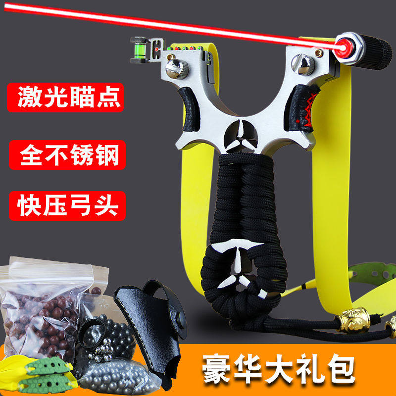 Steel ball shooter laser aiming infrared slingshot toy outdoor equipment high-precision flat rubber band slingshot strong