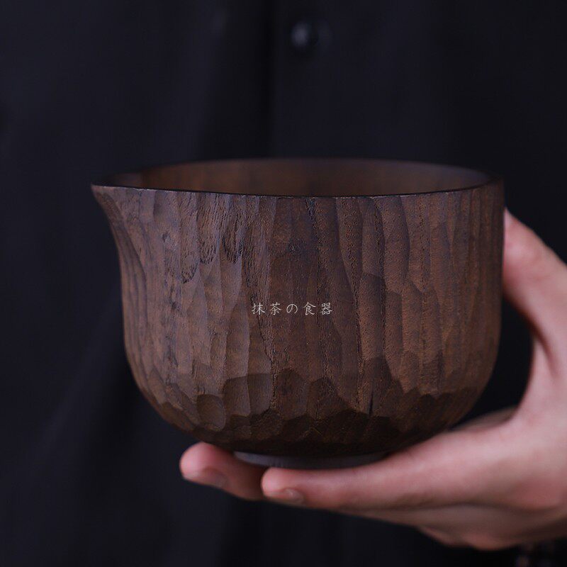 Creative Retro Hammer Tattooed Wood Rice Bowls Handmade Sliced Cheese Cup Bowls Round Dining Hall Flat Wood Salad Suit