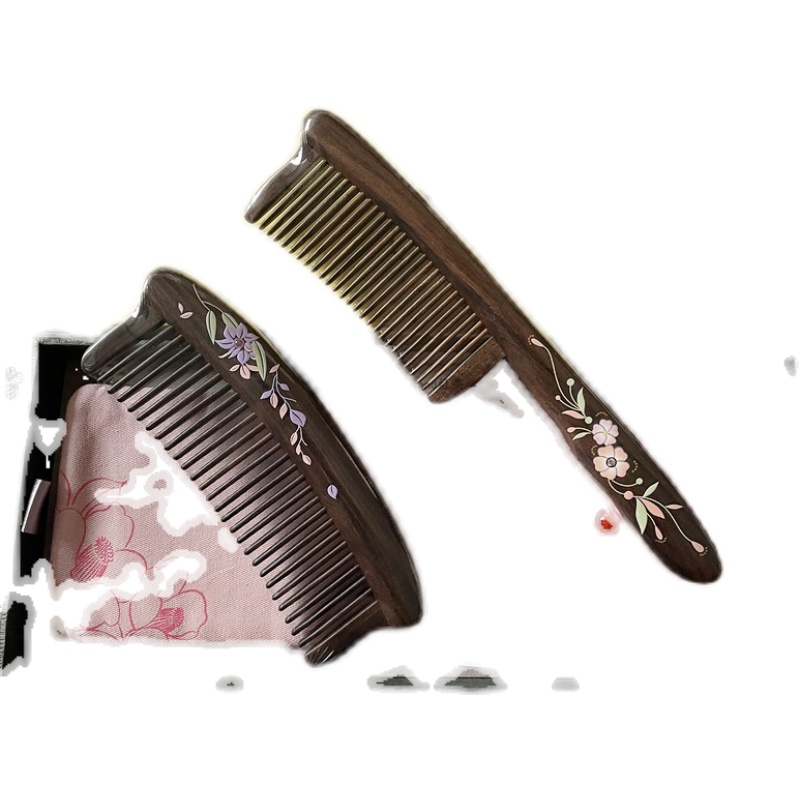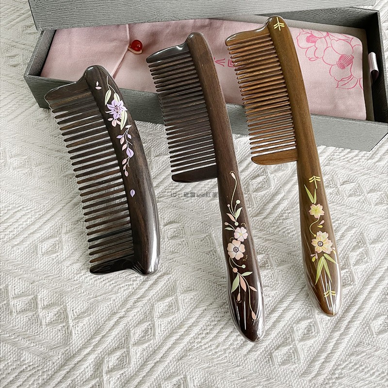 Tan carpenter counter new gift box inlaid tooth comb Taohua Fangfei Zixia natural wood comb ladies gift