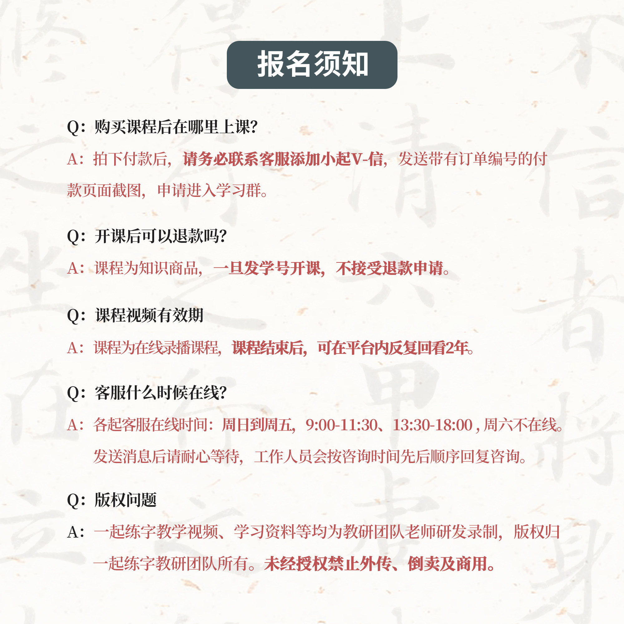 Registered course (tuition does not include tools) only supporting calligraphy tool kit