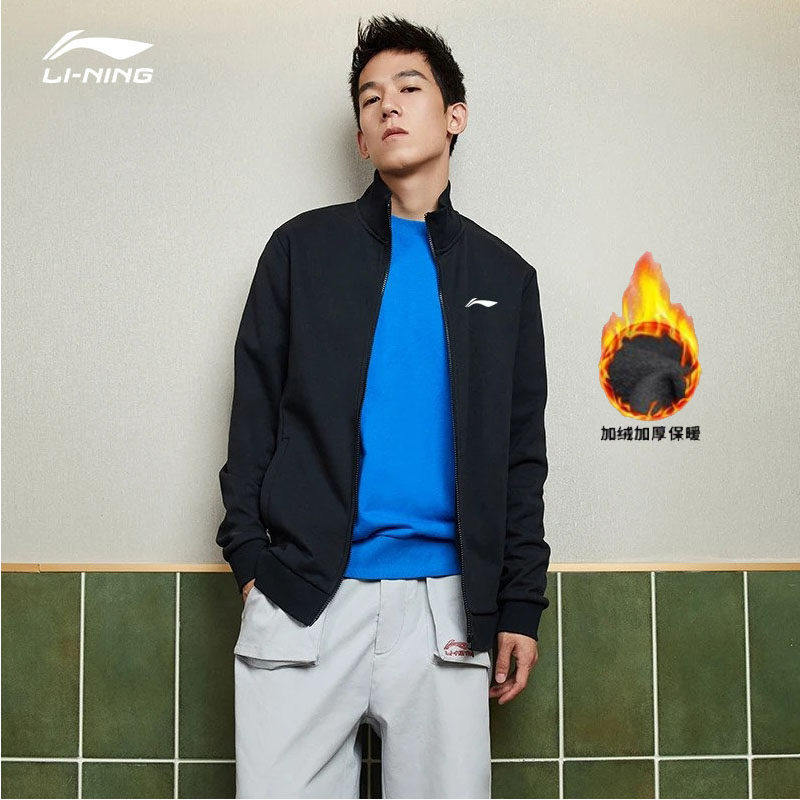 Li Ning jacket men's 2022 new fashion cardigan stand collar plus velvet warm thick jacket casual sportswear