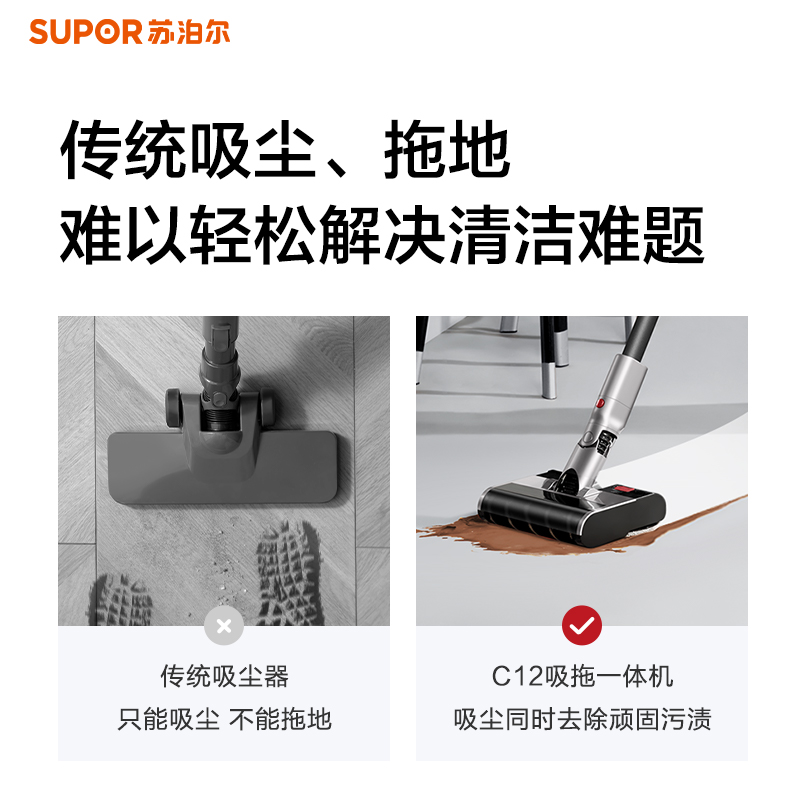Supor electric mop wireless sweeping, mopping and vacuuming three-in-one mopping machine smart home fully automatic net C12