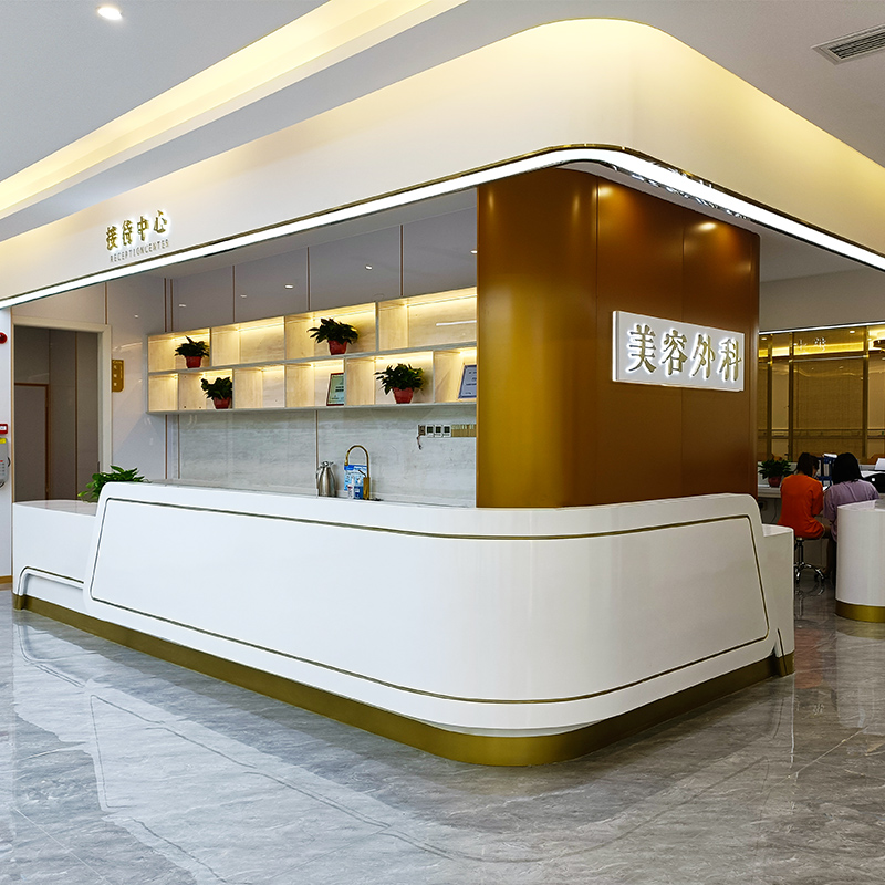 Glass fiber GRG Baking Lacquer Modern Creative Fashion Art Minimalist Beauty Salon Reception Desk Customised Golden