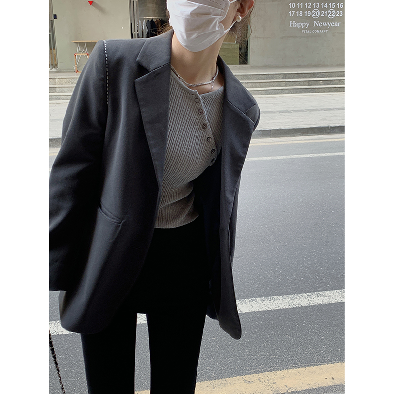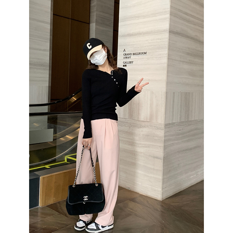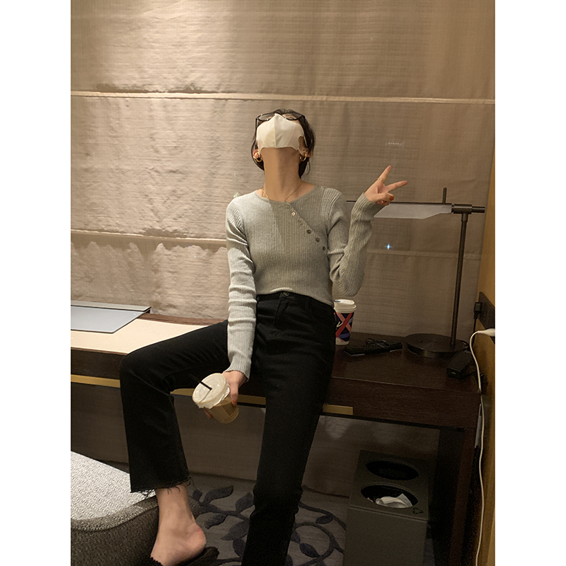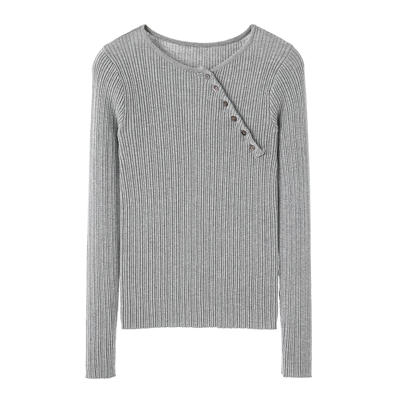 EKoOL Custom Skew Buckle Round Collar Long Sleeve Knit T-shirt Woman Spring New 100 hitch Slim Beating Underpins Jersey