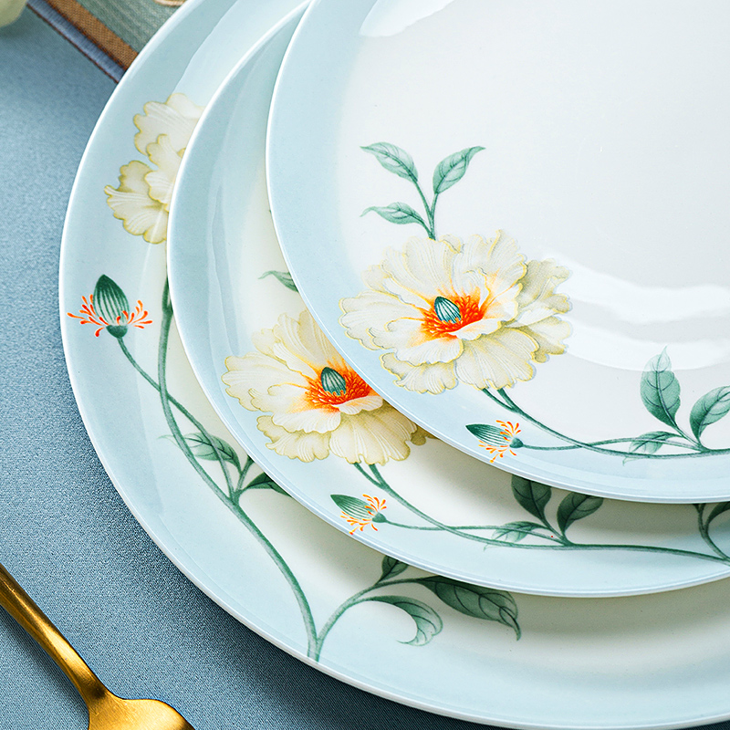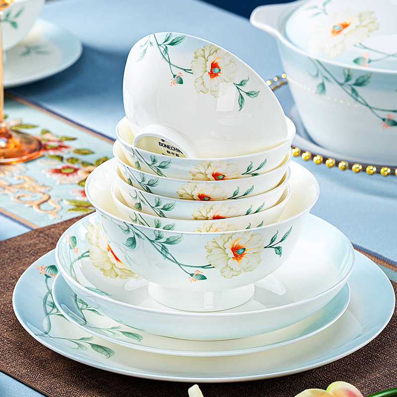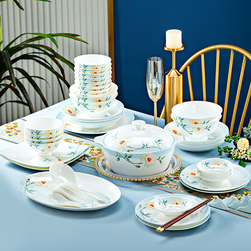 In-glaze color bone china tableware set new Chinese-style ceramic bowls, chopsticks, bowls and dishes set household housewarming new home bowl