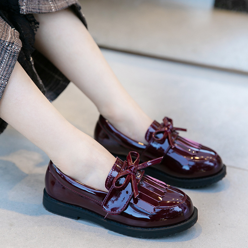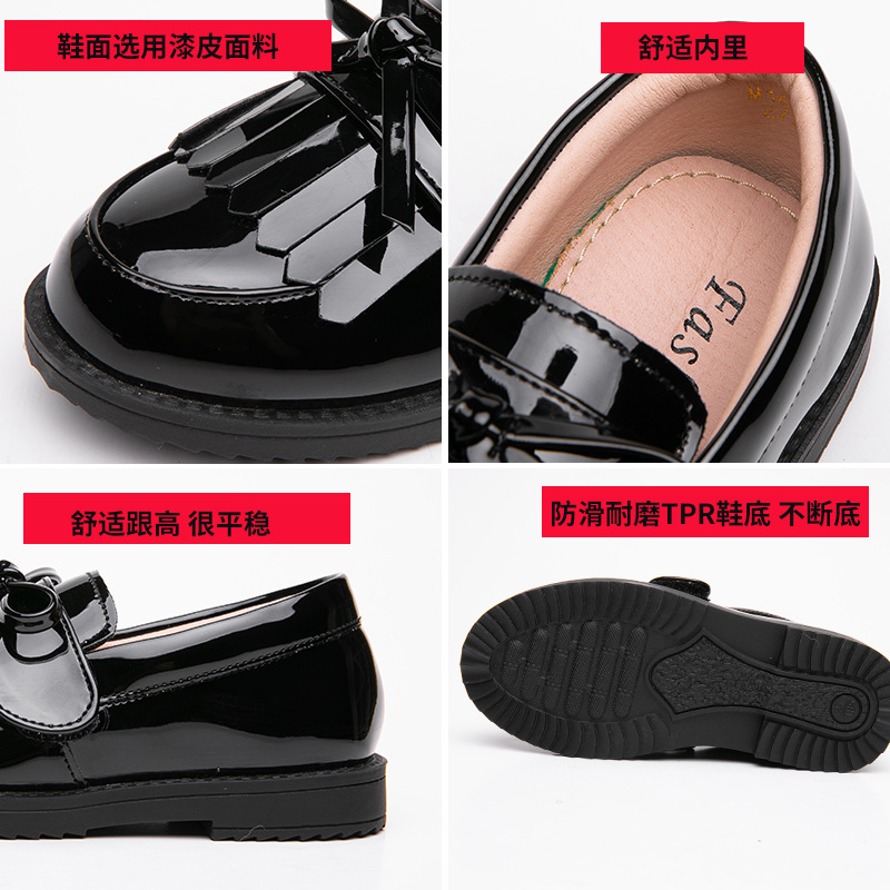 Girl Leather Shoes 2021 Fall New Children Single Shoes Soft Bottom Princess Shoes Inglées Wind Black Students Performance Shoes