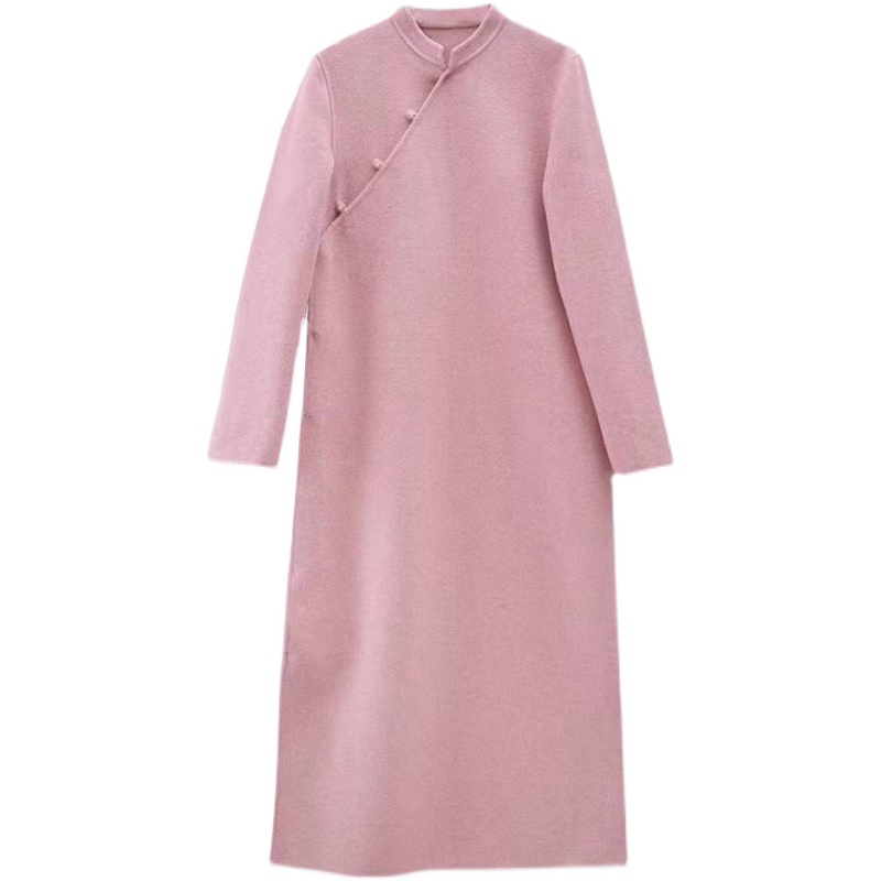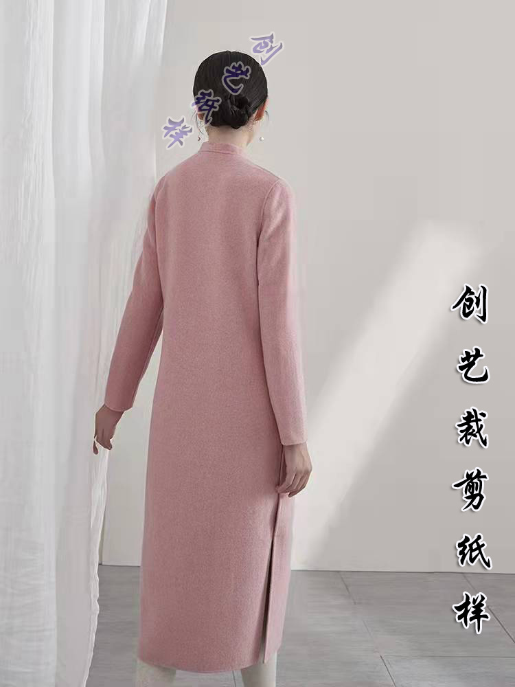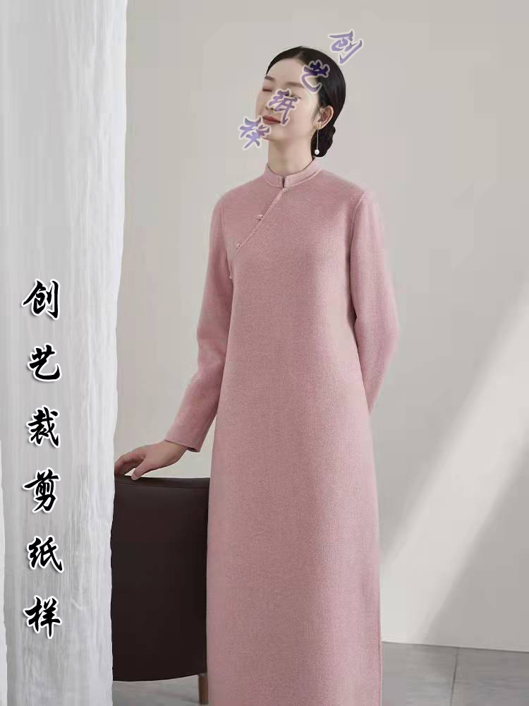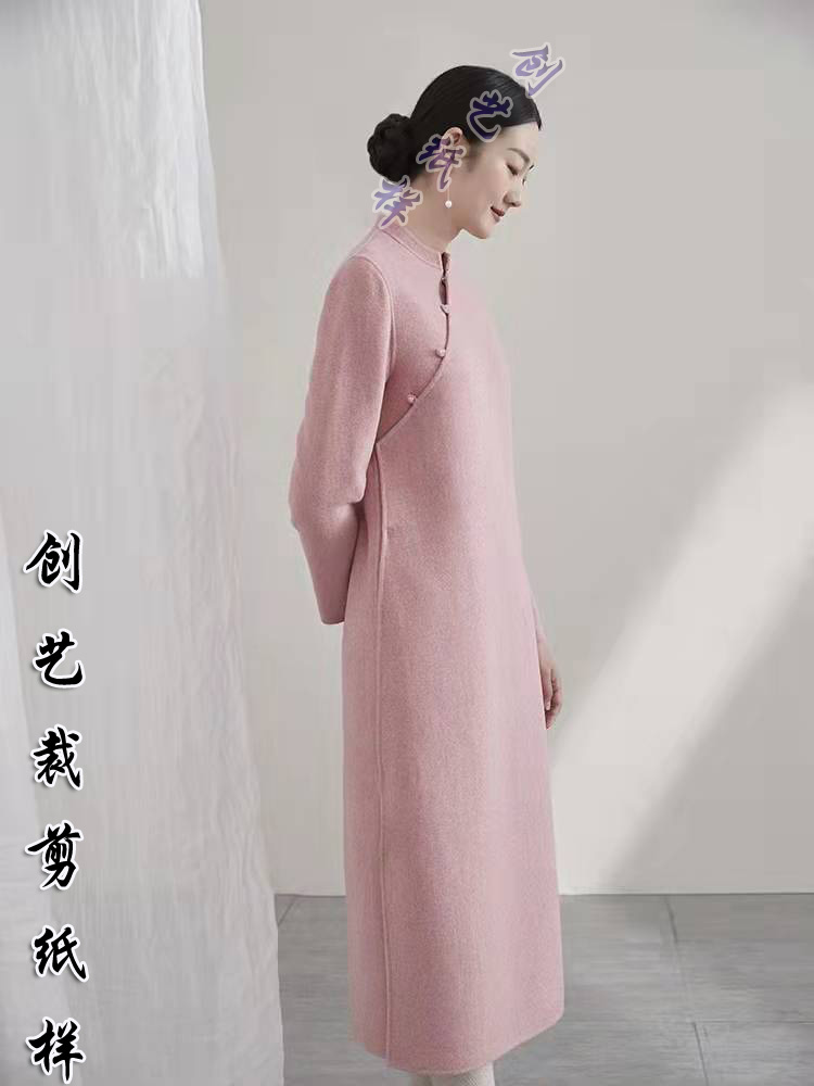 Paper pattern 1:1 cutting Q332 autumn and winter new stand-collar full-open skirt robe double-sided woolen woolen improved cheongsam drawings
