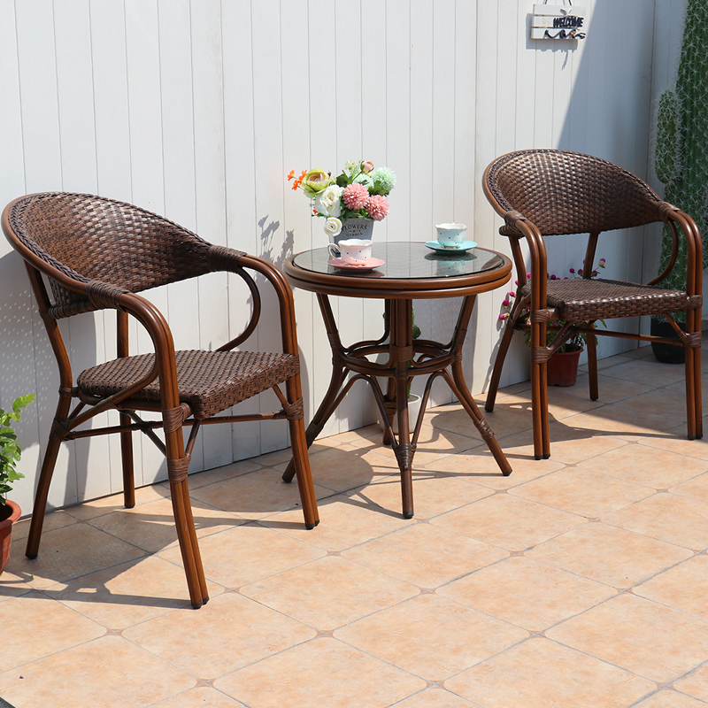 Outdoor table and chair combination three-piece set leisure rattan chair furniture five-piece set outdoor balcony courtyard wrought iron rattan table and chair