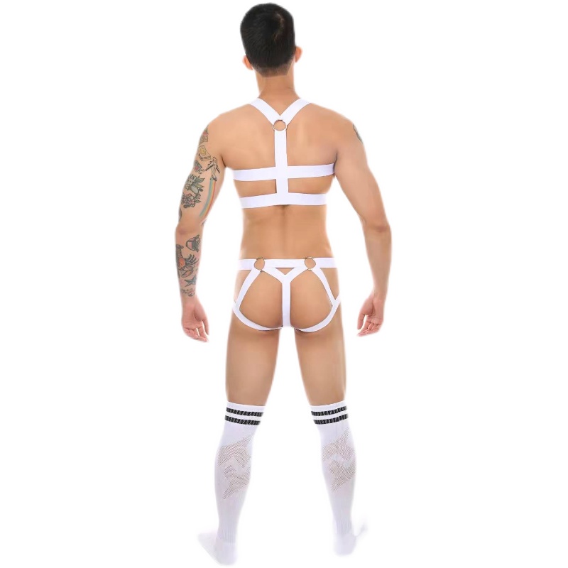 Boy Handsome Gas Nightclub Bar Clothing Display Large Steel Ring Chest Strap Shackles Double Ding Pants Sexy Long Silo Socks Performance Suit