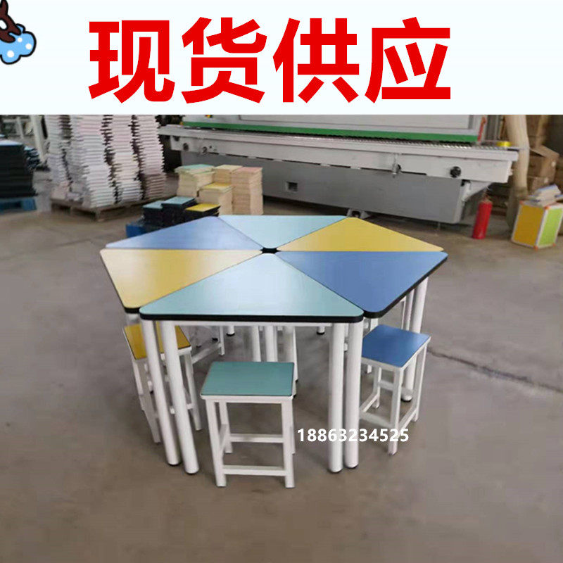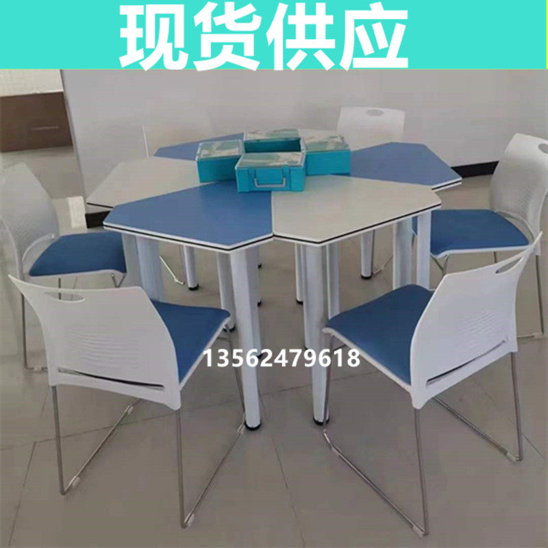 Smart Classroom Students Hexagon Triangle Table Trapezoidal Splicing View Table And Chairs Training Classroom Group Tutoring Fine Arts Table
