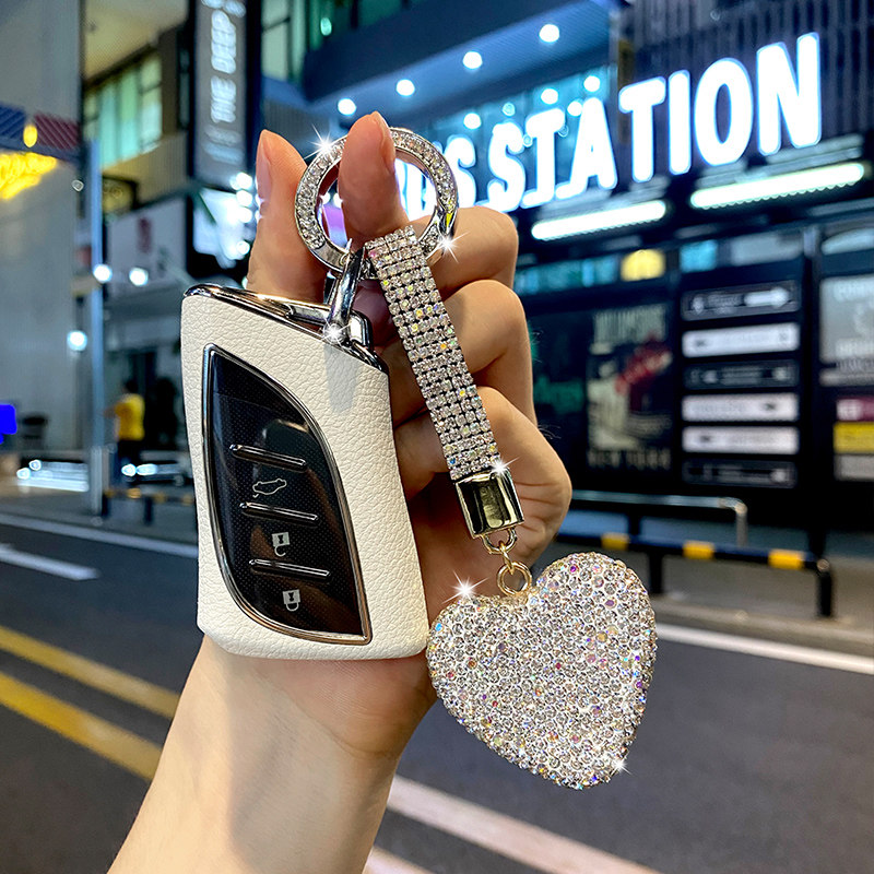 Lexus Model A-(white) Leather Key Cover Silver Lanyard Lexus Model A-(White) Leather Key Cover White Diamond Love Lexus Model A-(White) Leather Key Cover Stupid Bear Back Rabbit