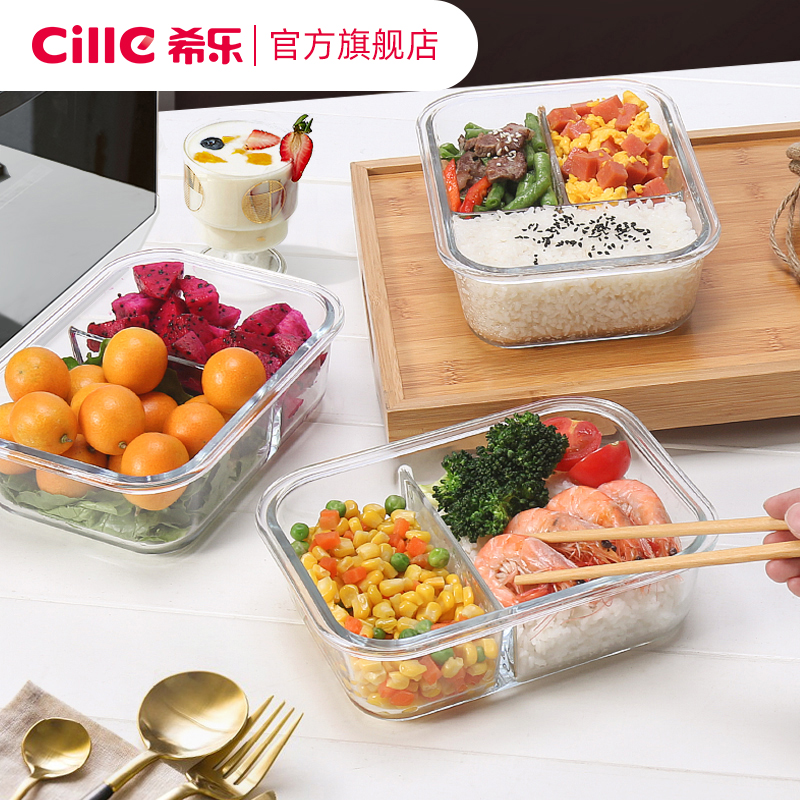 Xile glass lunch box for office workers microwave oven special heating lunch box for students with separated fresh-keeping warm lunch box