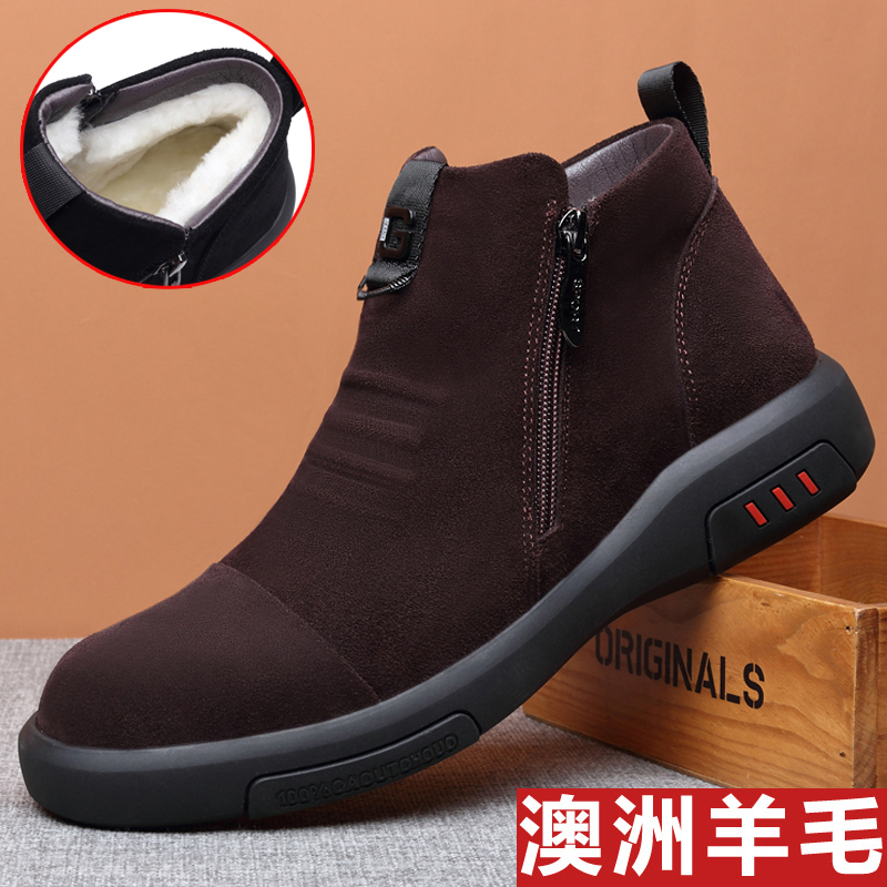 Winter snow boots men's shoes genuine leather wool thickened Northeastern cotton boots with suede warm cotton shoes men Martin short boots