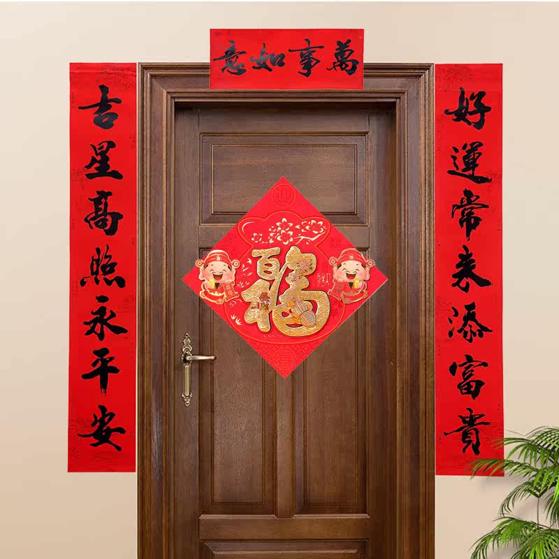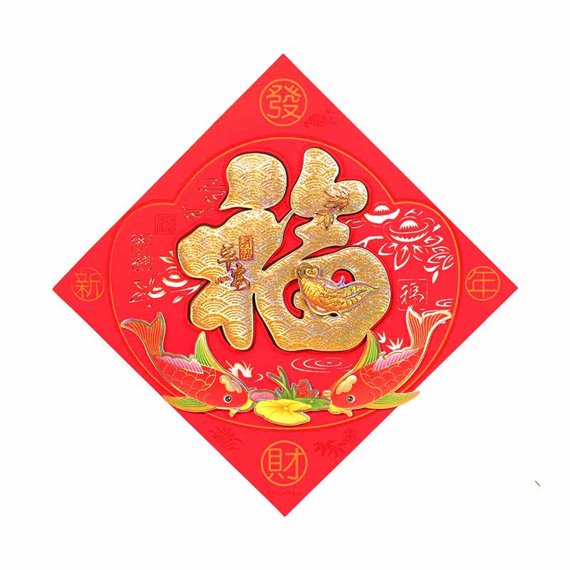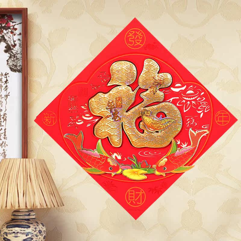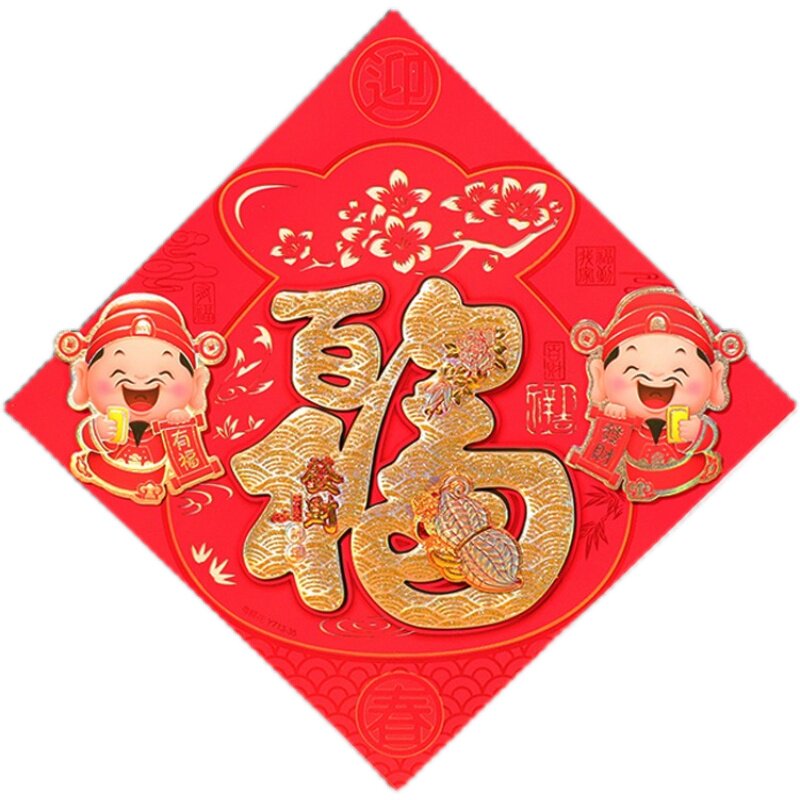 Linjie Spring Festival New Year Decoration 2022 Tiger Year Three-dimensional Fuzi Door Sticker New Year Paper-cut Wall Sticker New Year Stickers Arranged