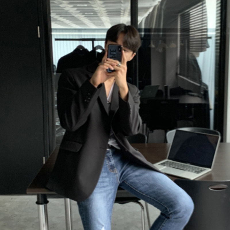 Bishe men's new casual slim top Korean suit jacket 2022 spring and autumn handsome single-breasted suit