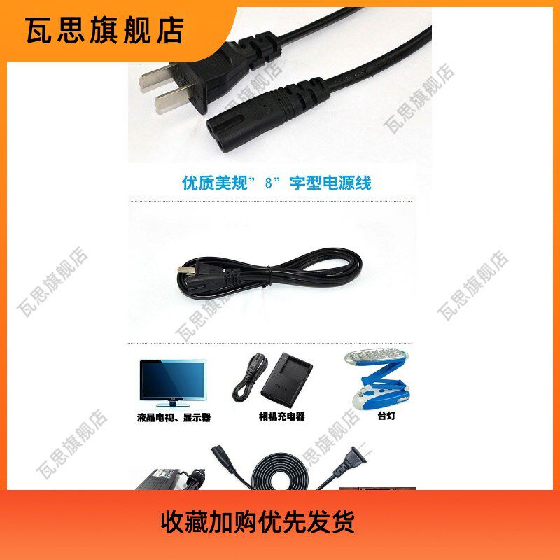 Waith 2 holes 8-word power cord plug Two-hole eight-word line printing machine TV Sound electronic scale charging