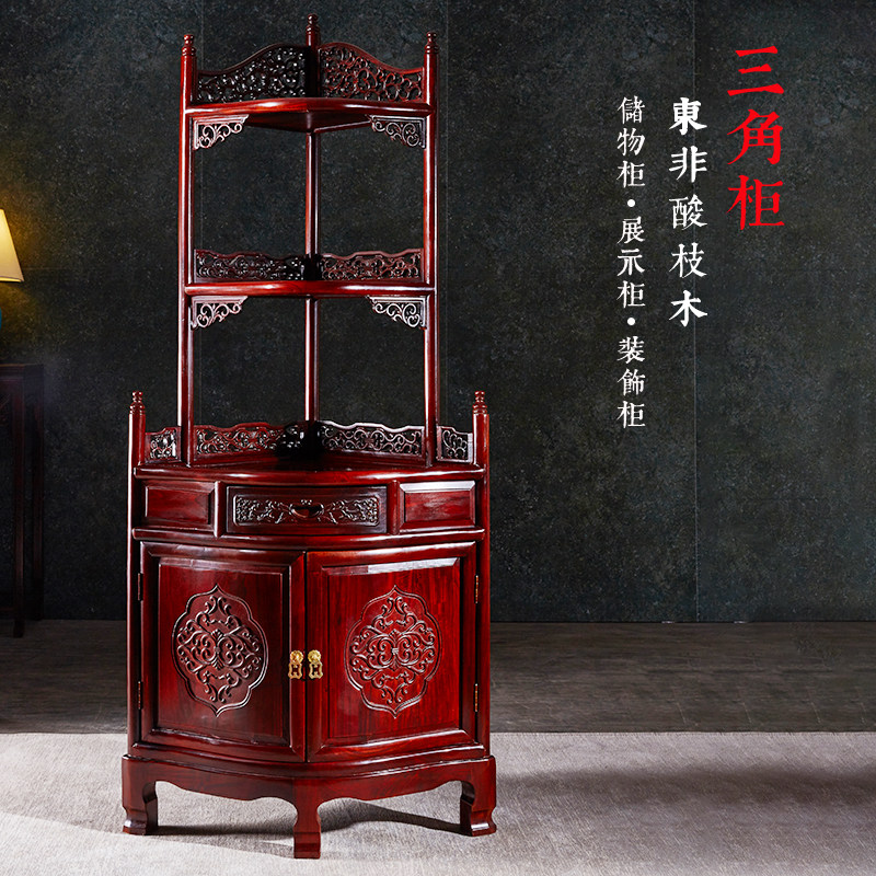 Mahogany corner cabinet acid branch wood triangle cabinet rosewood oblique corner locker living room storage corner cabinet shelf
