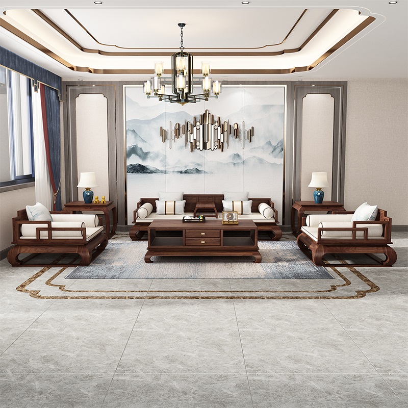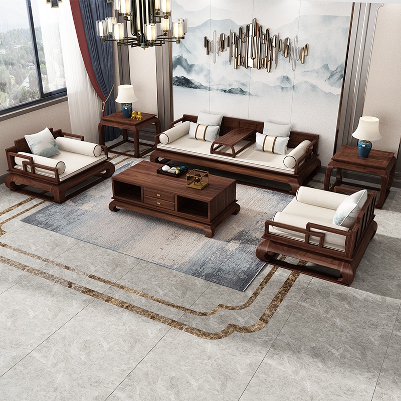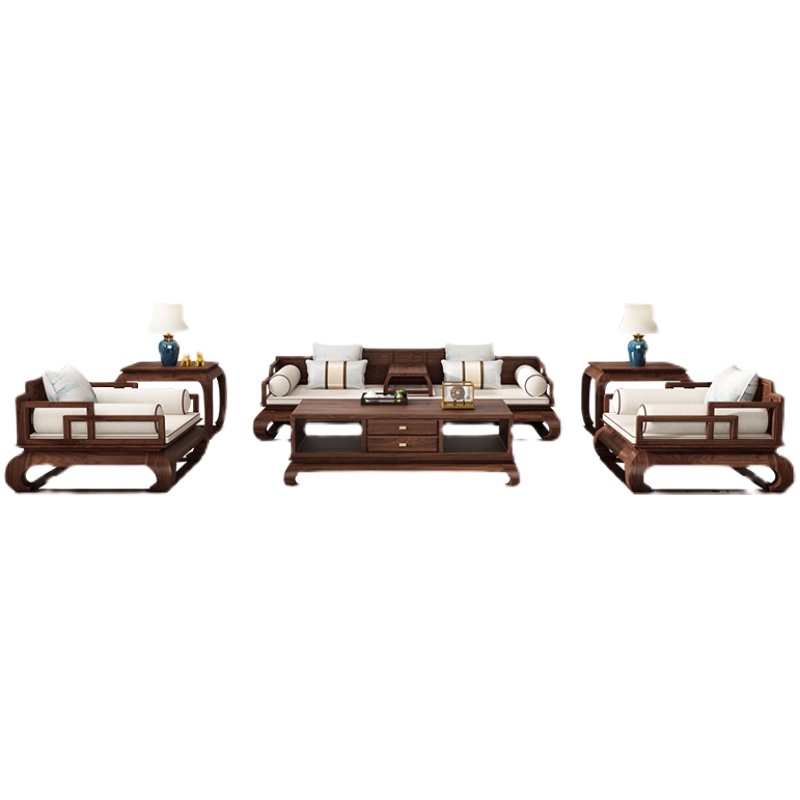 New Chinese all-solid wooden sofa black walnut muro Han bed living room Zen Rohantamin imitated ancient furniture