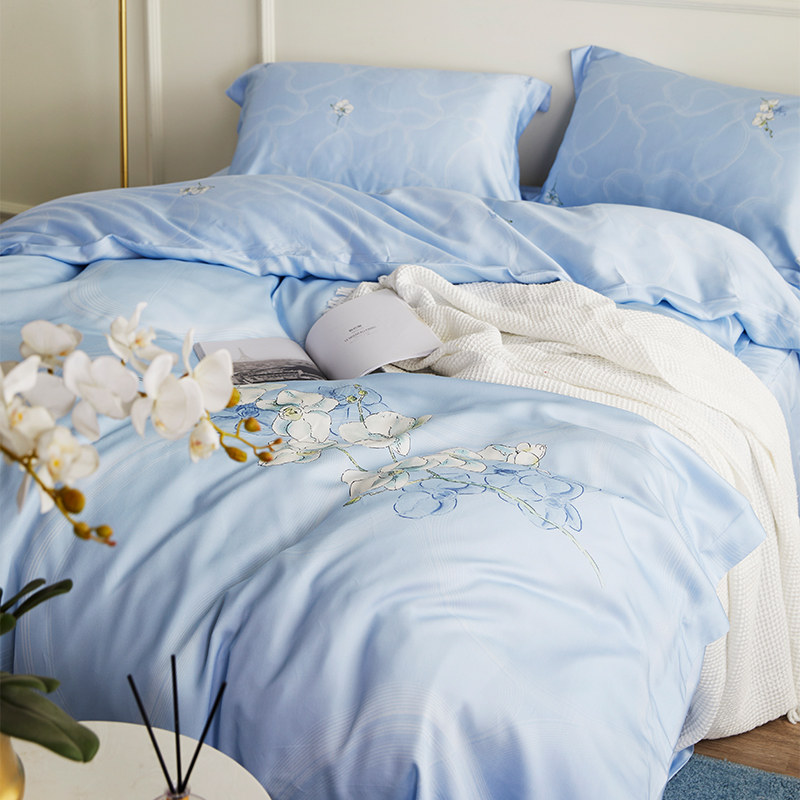 Rolai Home Spinning Bed Goods Spring Summer Sky Silk Sheets Quilt Cover 1 8 m Double Bed Ice Silk Four Sets
