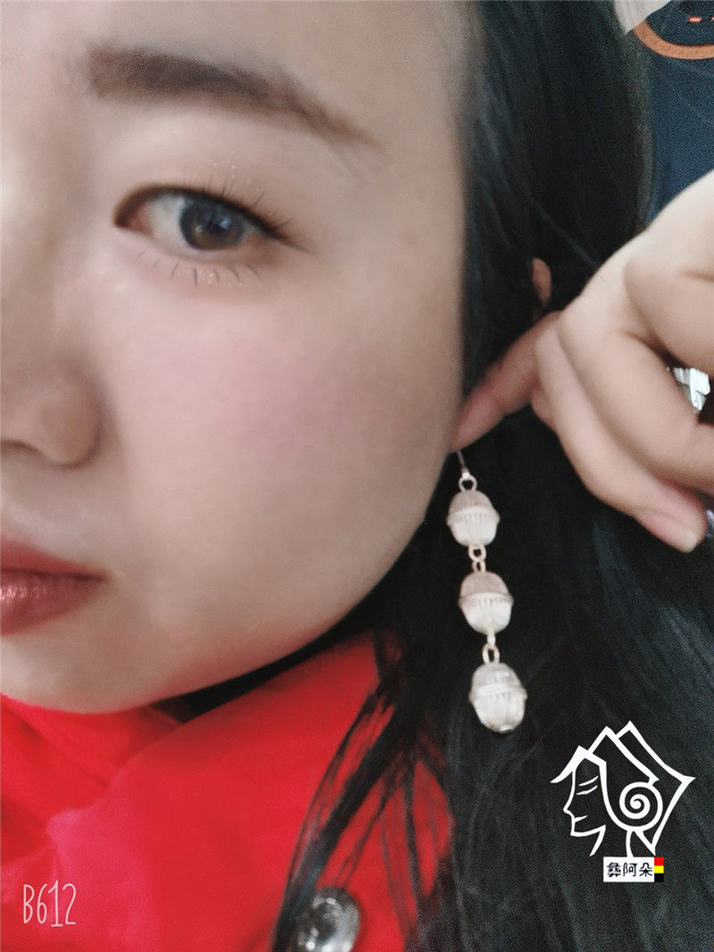 Cool Mountain Yi's pure silver ear ring pure handmade silver bead Three Everest Beads Ear Pendant Personality Temperament Brief Retro National Wind Hand Workers