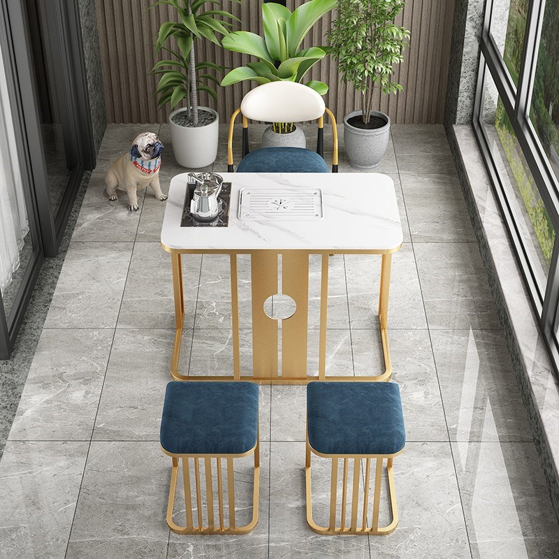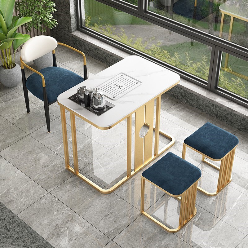 Light extravagant small family type tea table and chairs combined balcony tea tea tea set of tea set integrated rock plate tea table modern bubble tea table