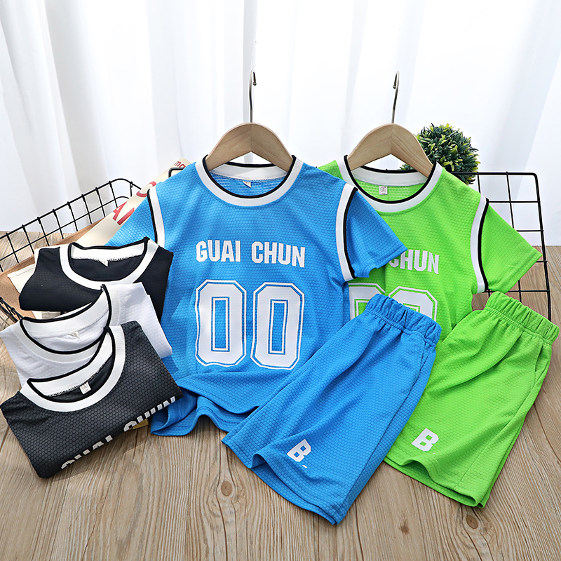 Boy sports suit children slim fit CUHK Tong speed dry short sleeve shorts Two sets of children summer dress girl T-shirt tide